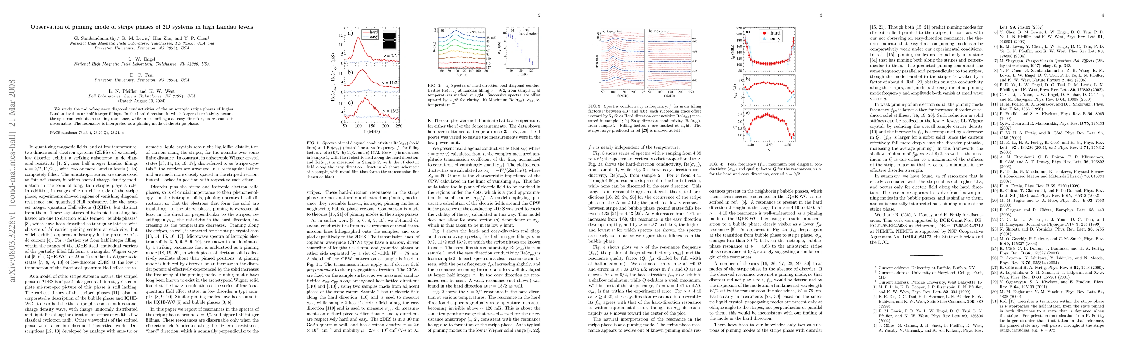 The research observes a unique resonance in the radio-frequency diagonal conductivities of anisotropic stripe phases in higher Landau levels, interpreted as a pinning mode. This phenomenon is distinctly visible in the hard direction with larger dc resistivity, unlike the easy direction.