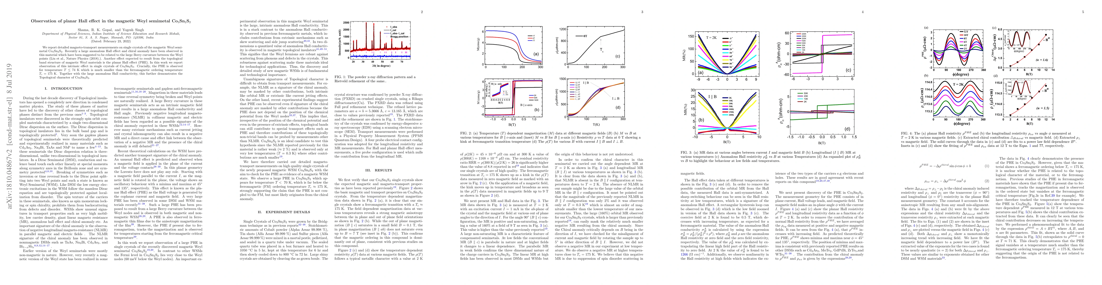 This paper reports the observation of the planar Hall effect in single crystals of the magnetic Weyl semimetal Co$_3$Sn$_2$S$_2$, demonstrating its topological character. The effect is observed at temperatures below 74 K, significantly lower than the material's ferromagnetic ordering temperature, reinforcing the material's unique topological properties.