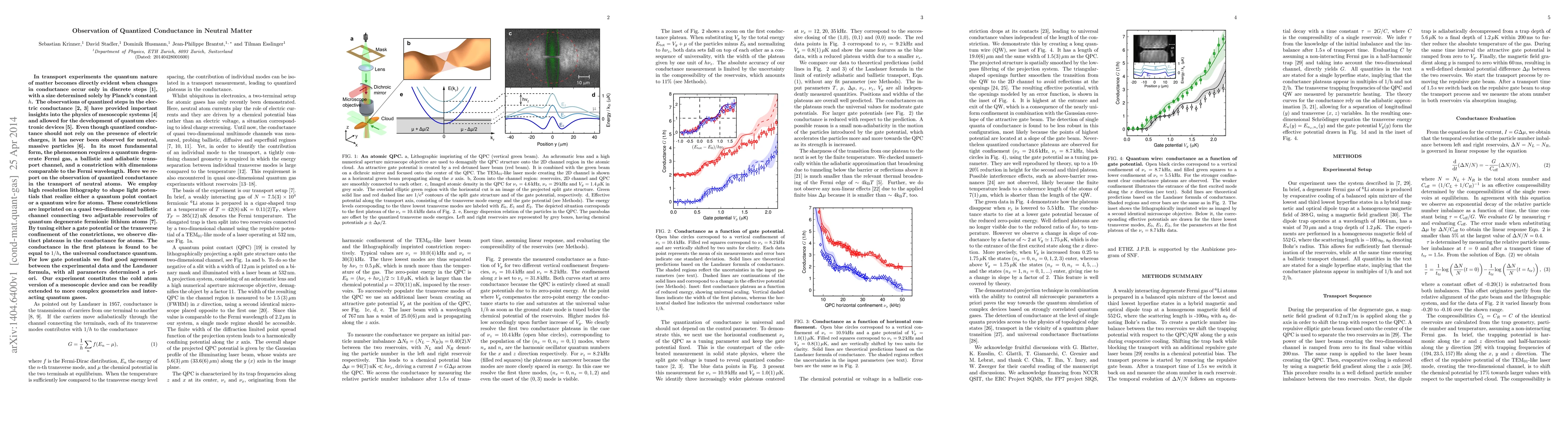 Researchers have observed quantized conductance in neutral atoms for the first time, demonstrating discrete steps in conductance governed by Planck's constant. This observation, achieved using cold fermionic lithium atoms in a quasi two-dimensional ballistic channel, aligns with theoretical predictions and opens new avenues for quantum electronic devices.