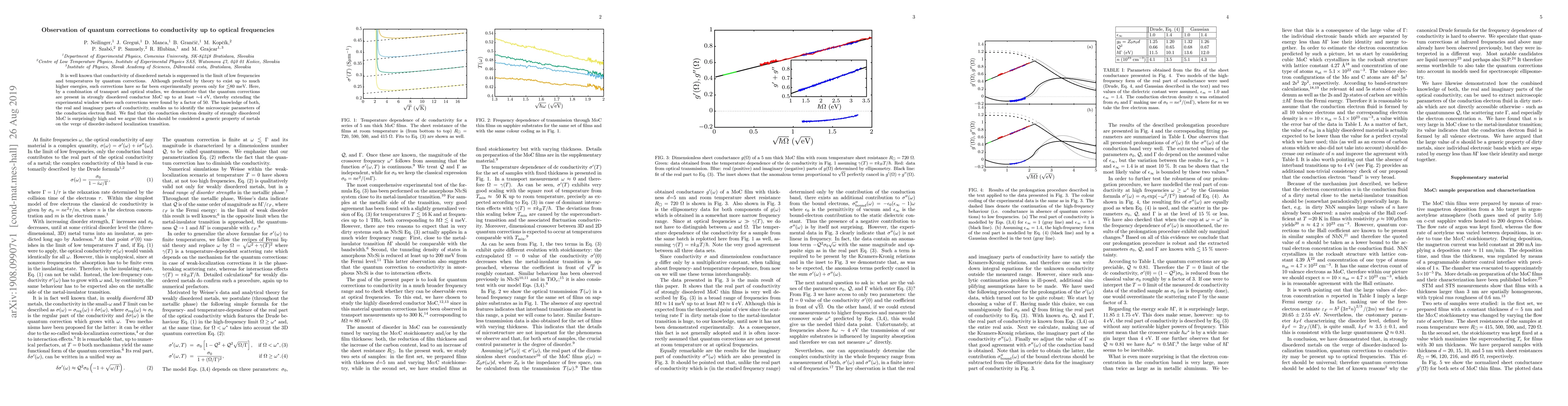 The study combines transport and optical measurements to analyze the conductivity of strongly disordered MoC thin films, extending the experimental window for quantum corrections to at least 4 eV.