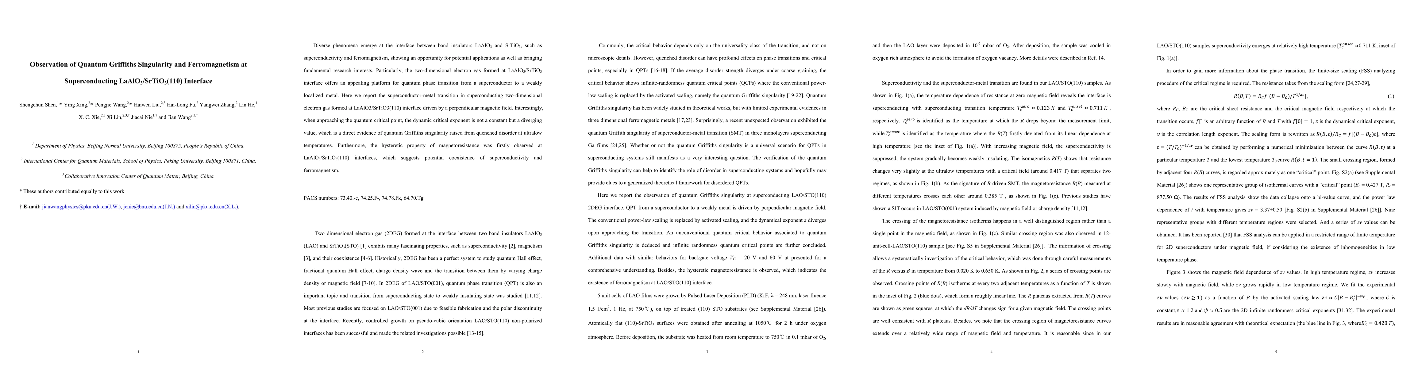 Research observes the emergence of quantum Griffiths singularity and ferromagnetism at the LaAlO3/SrTiO3(110) interface, demonstrating a superconductor-metal transition driven by a magnetic field and revealing potential for both fundamental studies and applications.