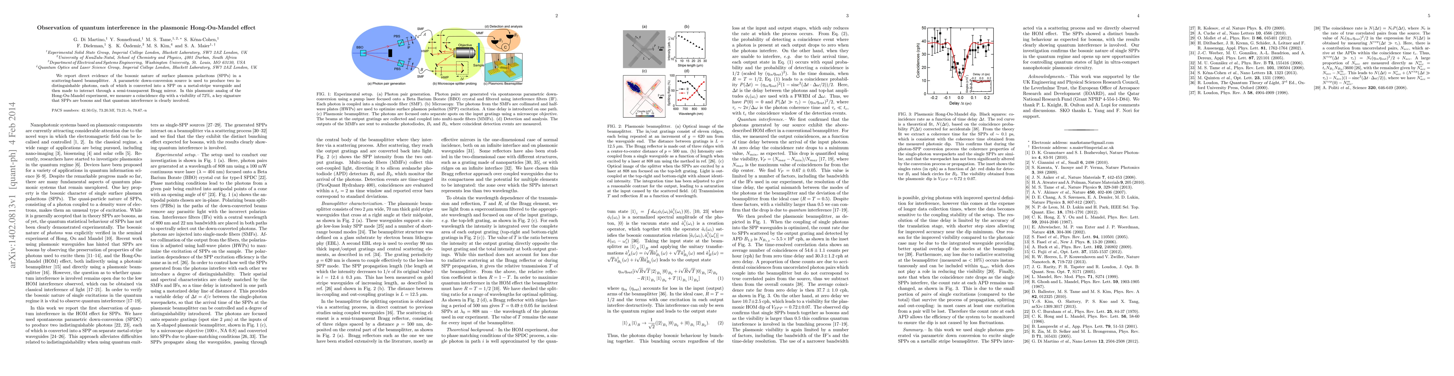 The discovery and characterization of the bosonic nature of single SPPs using parametric down-conversion.