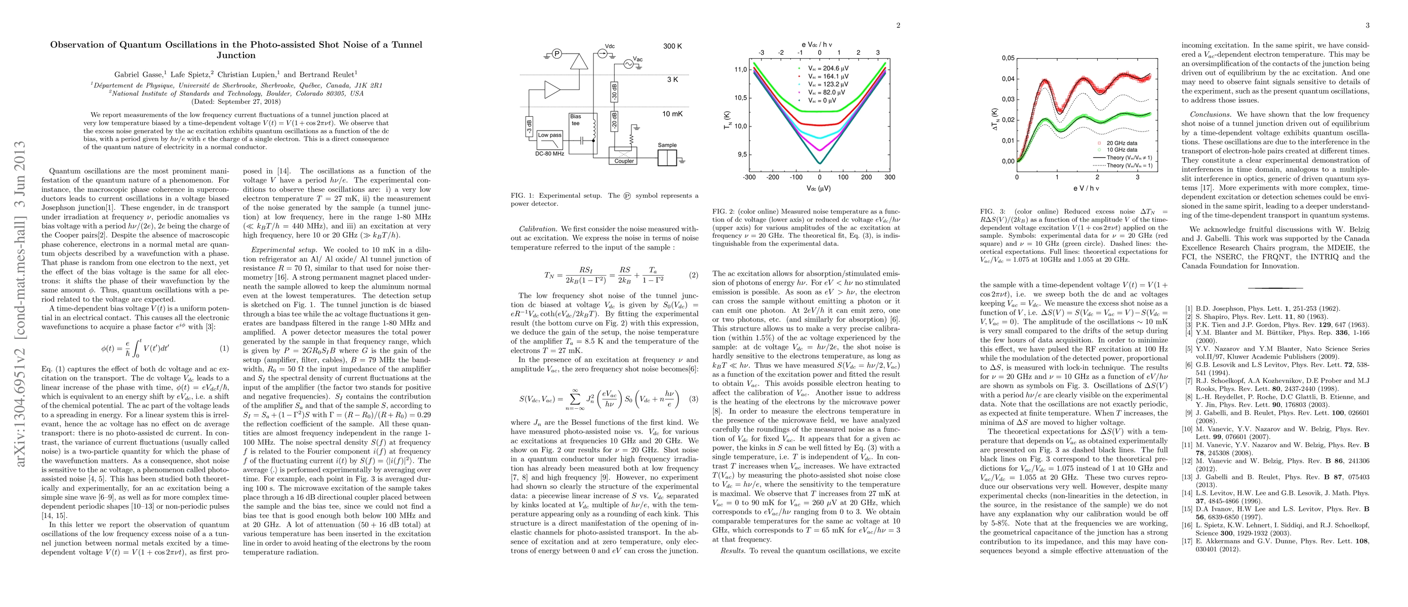 This paper reports on the observation of quantum oscillations in the photo-assisted shot noise of a tunnel junction, revealing periodic fluctuations in noise due to ac excitation, consistent with the quantum nature of electricity.
