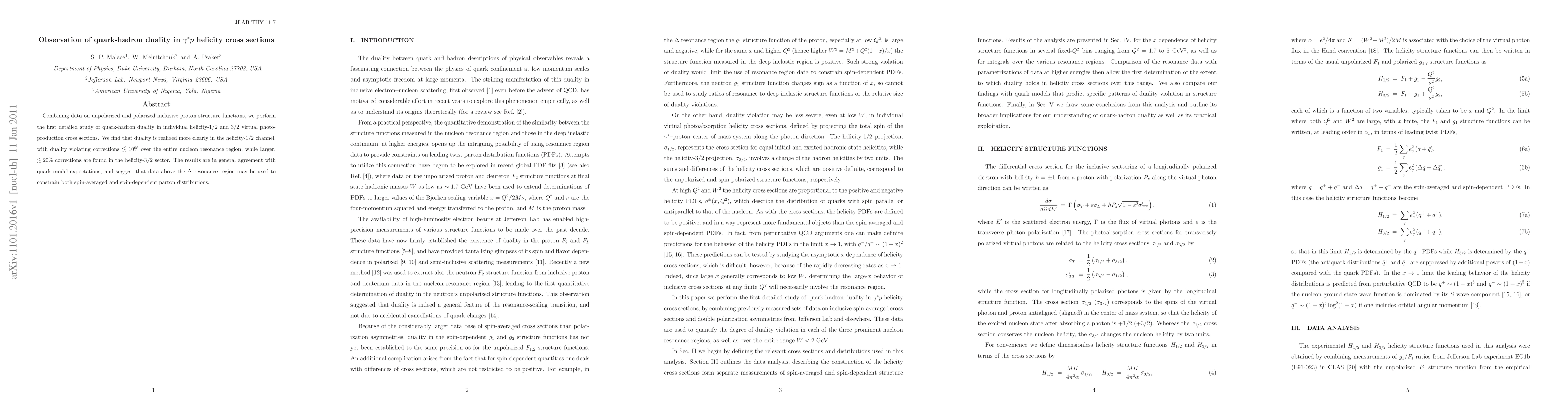 Researchers observe quark-hadron duality in gamma* proton interactions, finding clearer duality in lower-energy helicity-1/2 channels with corrections < 10%, while higher-energy helicity-3/2 channels show larger corrections (< 20%).