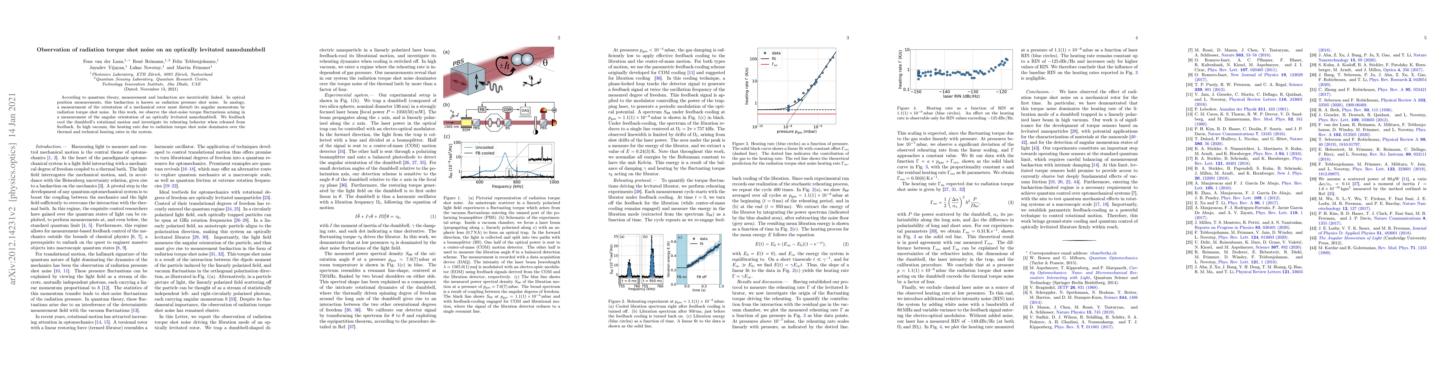 According to quantum theory, measurement and backaction are inextricably linked. In optical position measurements, this backaction is known as radiation pressure shot noise. In analogy, a measurement of the orientation of a mechanical rotor must disturb its angular momentum by radiation torque shot noise. In this work, we observe the shot-noise torque fluctuations arising in a measurement of the angular orientation of an optically levitated nanodumbbell. We feedback cool the dumbbell's rotational motion and investigate its reheating behavior when released from feedback. In high vacuum, the heating rate due to radiation torque shot noise dominates over the thermal and technical heating rates in the system.