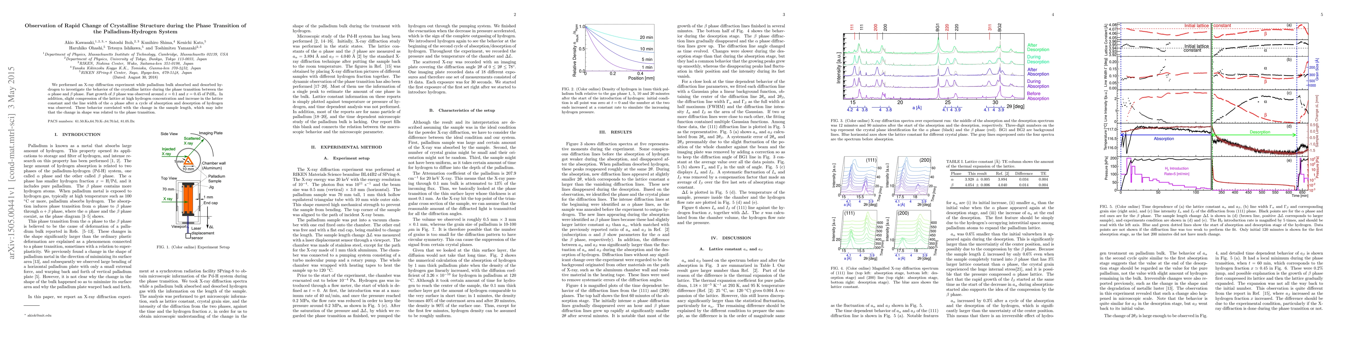 The study used X-ray diffraction to examine palladium's crystal structure changes during hydrogen absorption and desorption. It discovered rapid $eta$ phase growth at specific hydrogen concentrations and lattice compression, constant increase, and line width expansion in the $alpha$ phase post-cycle. These findings suggest a link between lattice alterations and phase transitions, impacting the material's shape.