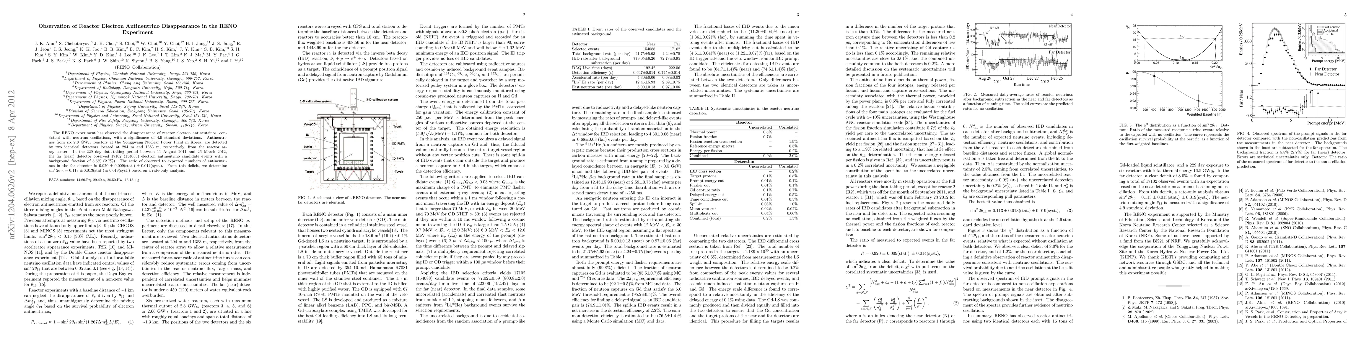 The RENO experiment has detected a significant disappearance of reactor electron antineutrinos, consistent with neutrino oscillations, with a 4.9-sigma significance. The observed deficit of antineutrinos from six reactors at the Yonggwang Nuclear Power Plant led to the determination of $\sin^2 2 \theta_{13} = 0.113 \pm 0.013$.