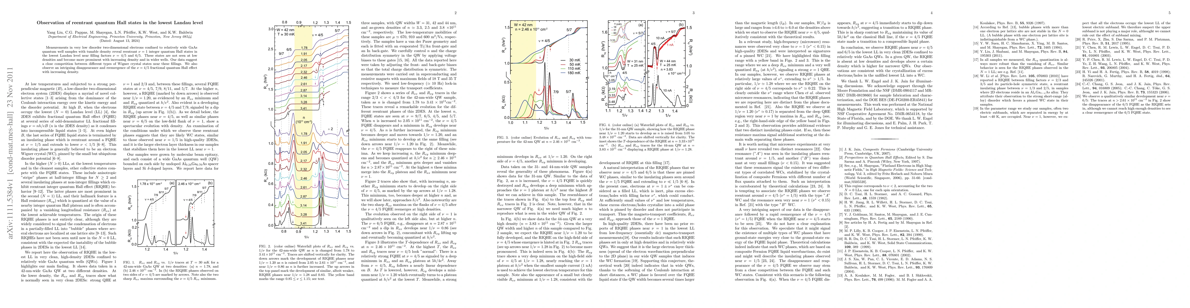 The paper presents detailed measurements of magneto-transport coefficients in low-disorder 2DES, revealing novel RIQHE states near π = 4/5 and 6/5 in the lowest Landau level.
