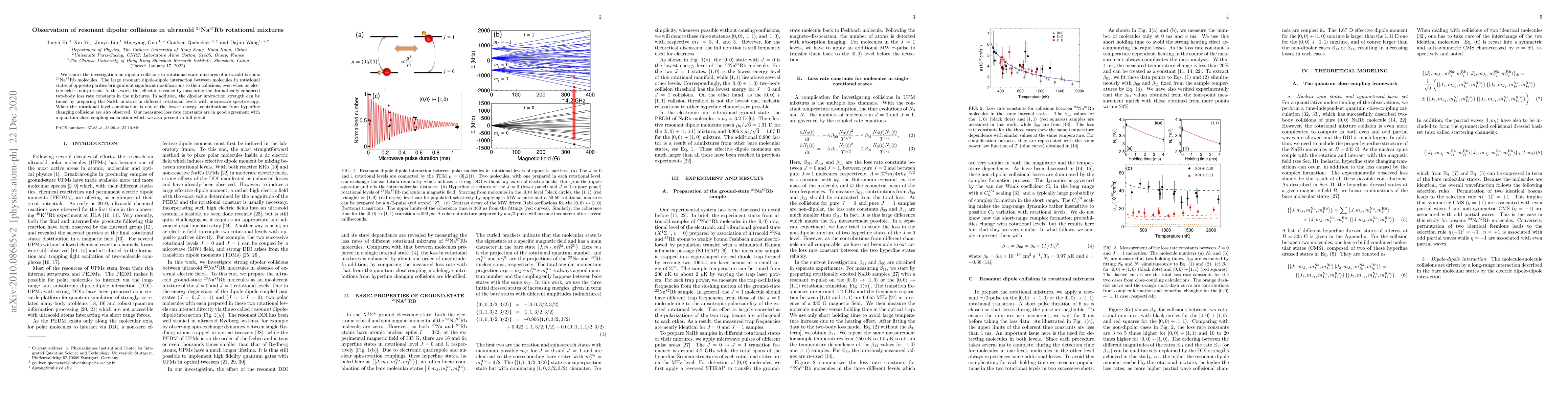This paper investigates resonant dipolar collisions in ultracold $^{23}$Na$^{87}$Rb rotational mixtures, revealing significant modifications due to large dipole-dipole interactions. The study measures enhanced two-body loss rates and demonstrates tunable dipolar interaction strength via microwave spectroscopy, with results corroborated by quantum close-coupling calculations.