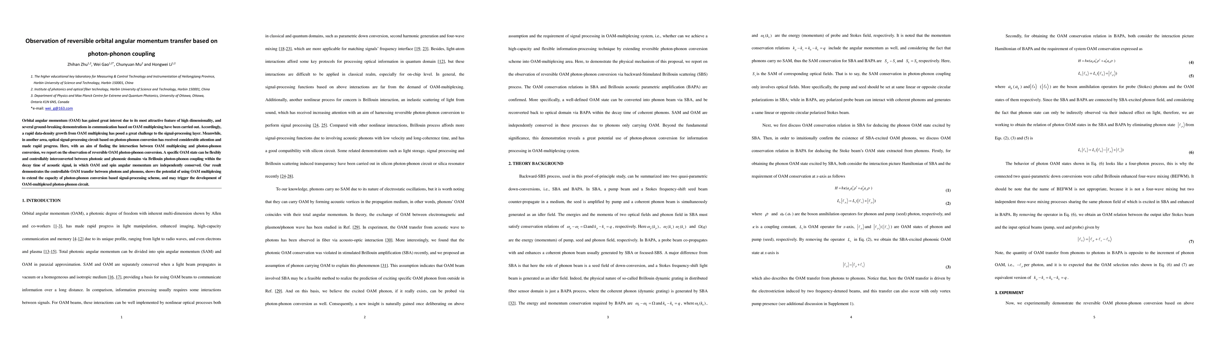 The paper presents a novel method for interconverting well-defined OAM states between photonic and phononic domains, leveraging controllable OAM transfer in SBA and BAPA.