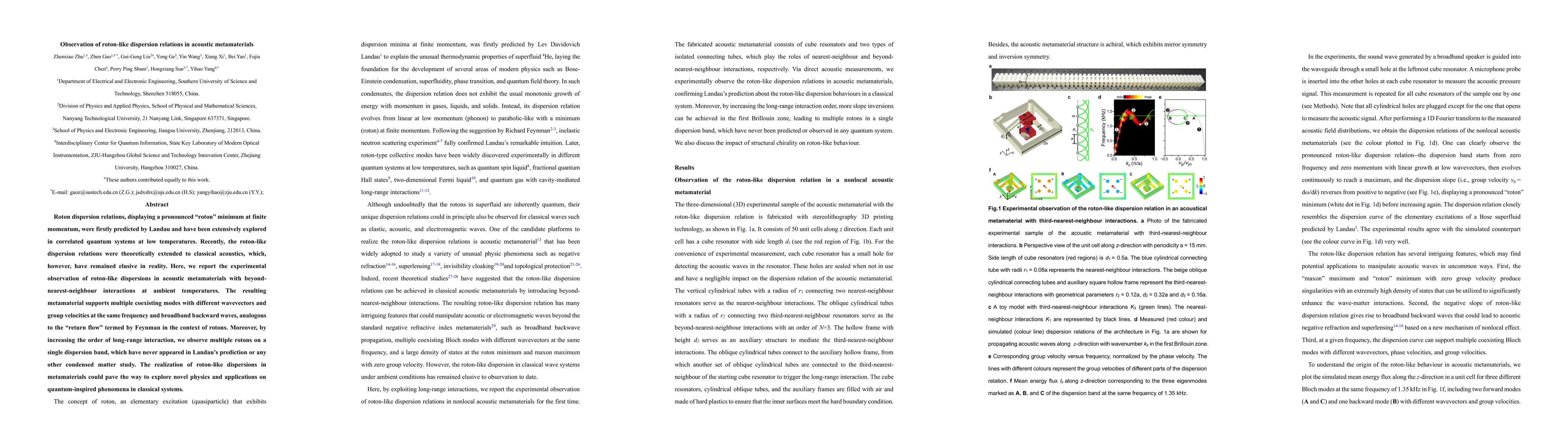 This research reports the first experimental observation of roton-like dispersions in acoustic metamaterials, showcasing multiple coexisting modes and broadband backward waves. The study extends Landau's roton concept to classical acoustics, revealing multiple rotons on a single dispersion band, which may inspire new physics and applications in classical systems.