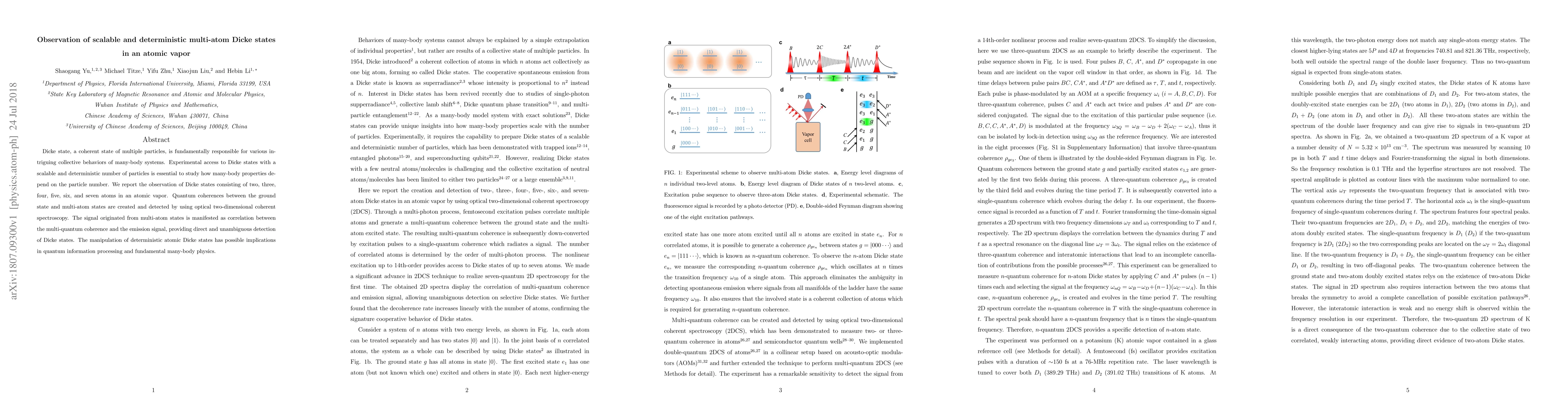 This paper reports the observation of scalable and deterministic multi-atom Dicke states in an atomic vapor, achieved by creating and detecting quantum coherences using optical two-dimensional coherent spectroscopy. The findings have potential implications for quantum information processing and fundamental many-body physics.