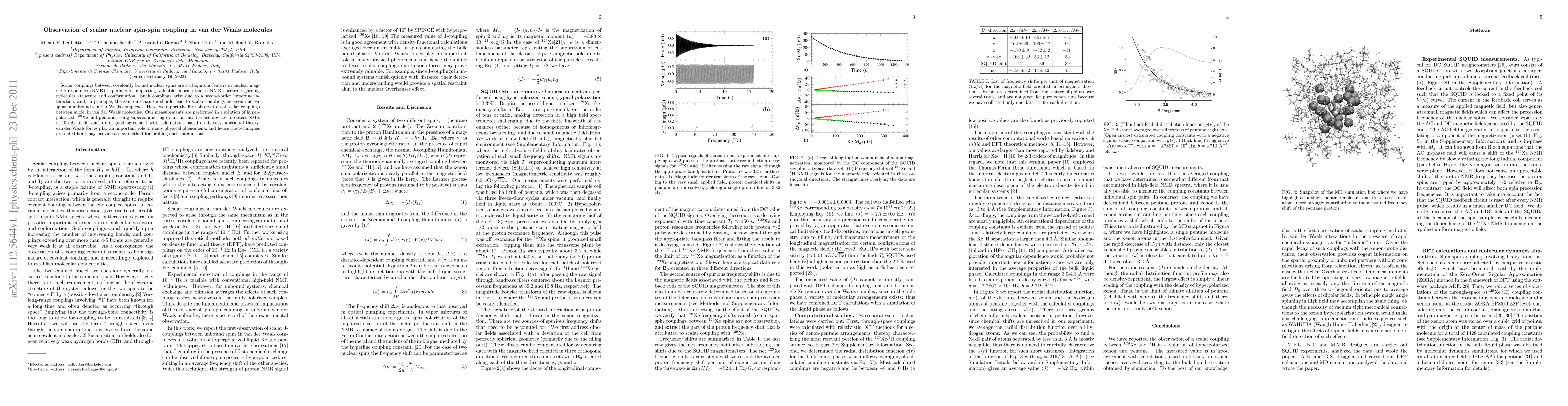 This paper reports the first observation of scalar nuclear spin-spin coupling in van der Waals molecules using hyperpolarized ${\rm ^{129}Xe}$ and pentane in NMR experiments, revealing a mechanism for probing intermolecular interactions through these couplings. The findings align with density functional theory calculations and open new avenues for studying van der Waals forces.