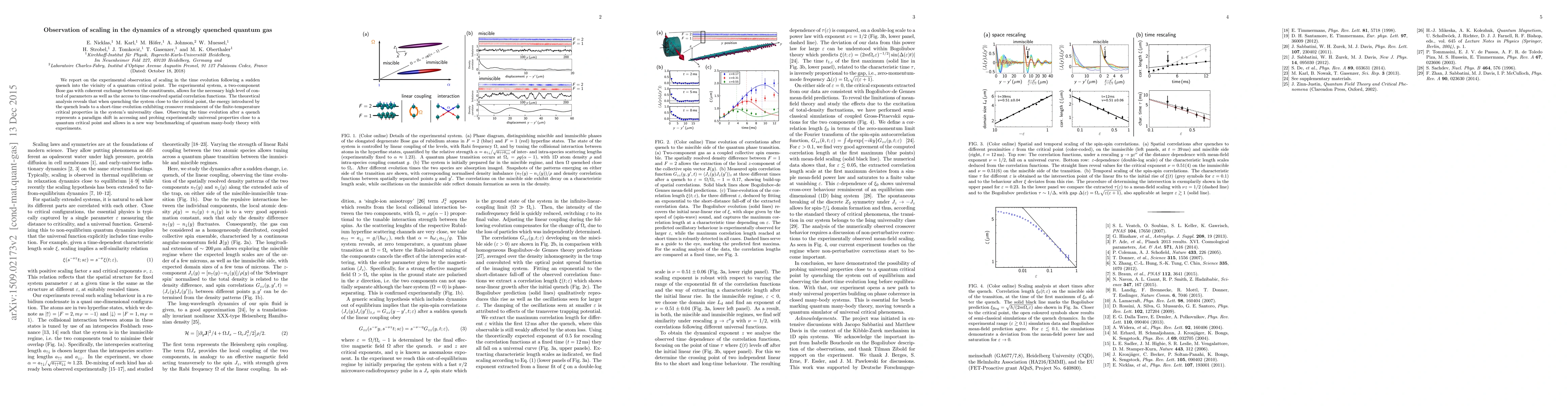 Researchers observed scaling in the dynamics of a quantum gas after a sudden quench near a quantum critical point, providing new insights into universal properties and the potential for experimental verification of quantum many-body theory.