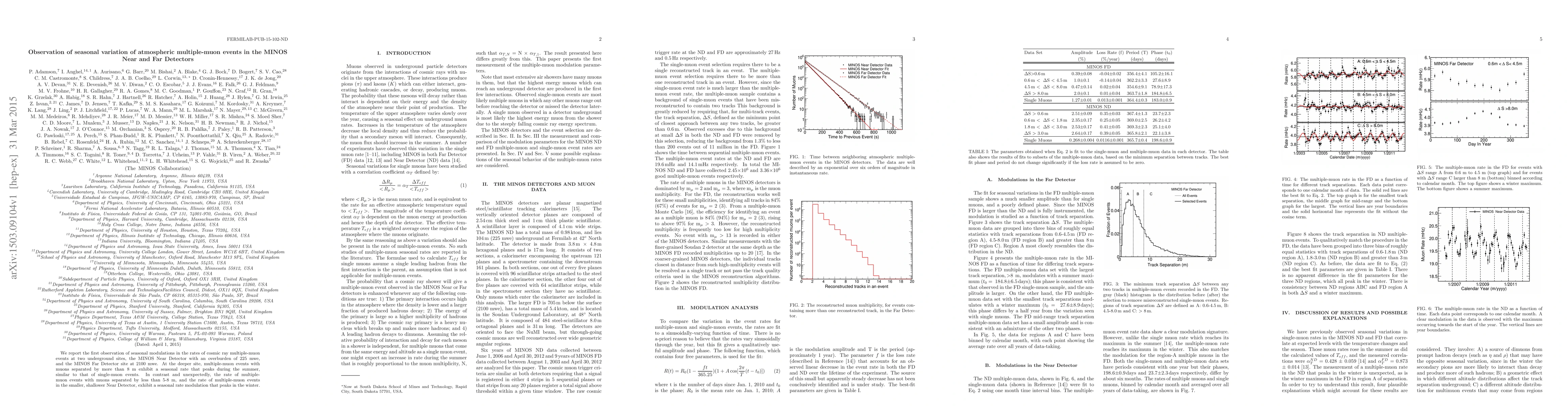 This study observes seasonal variations in cosmic ray multiple-muon events detected by the MINOS Near and Far Detectors, revealing a summer peak at the deeper site for widely separated muons, while a winter peak is found for closely separated muons and events in the shallower Near Detector.
