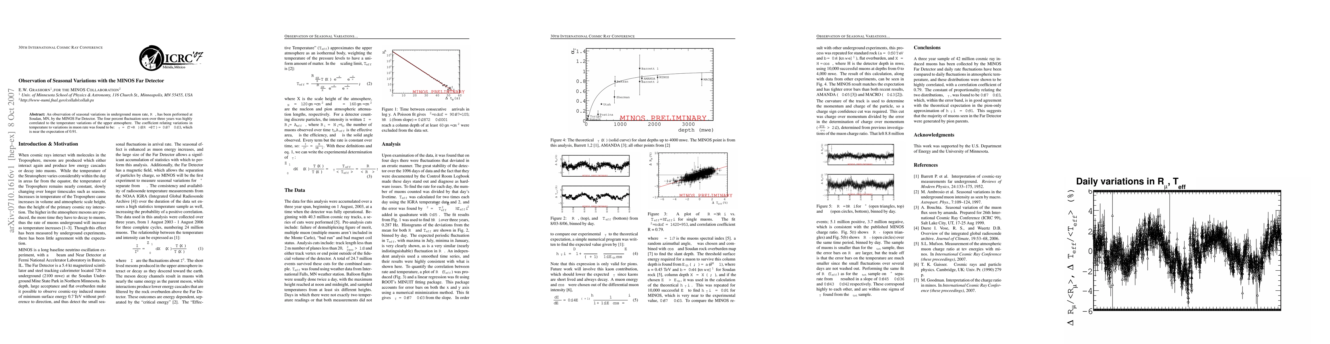 The MINOS Far Detector observed a four percent fluctuation in underground muon rate over three years, correlating strongly with upper atmospheric temperature variations. The coefficient relating these variations was found to be $\alpha_T = 0.87 \pm 0.03$, close to the expected value of 0.91.