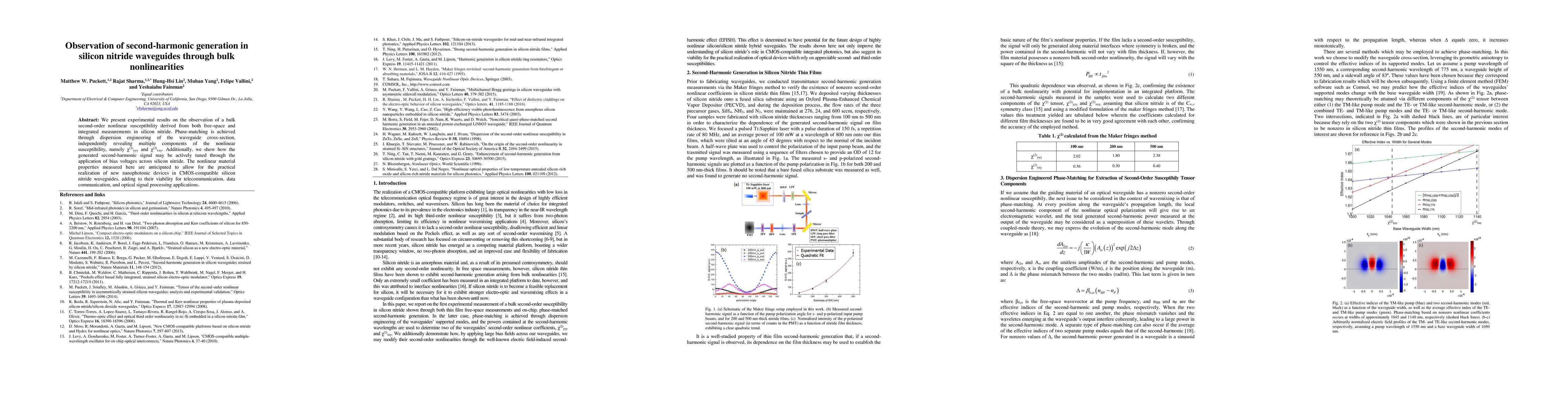 This research demonstrates a novel approach to achieving phase-matched second-harmonic generation in silicon nitride thin films.
