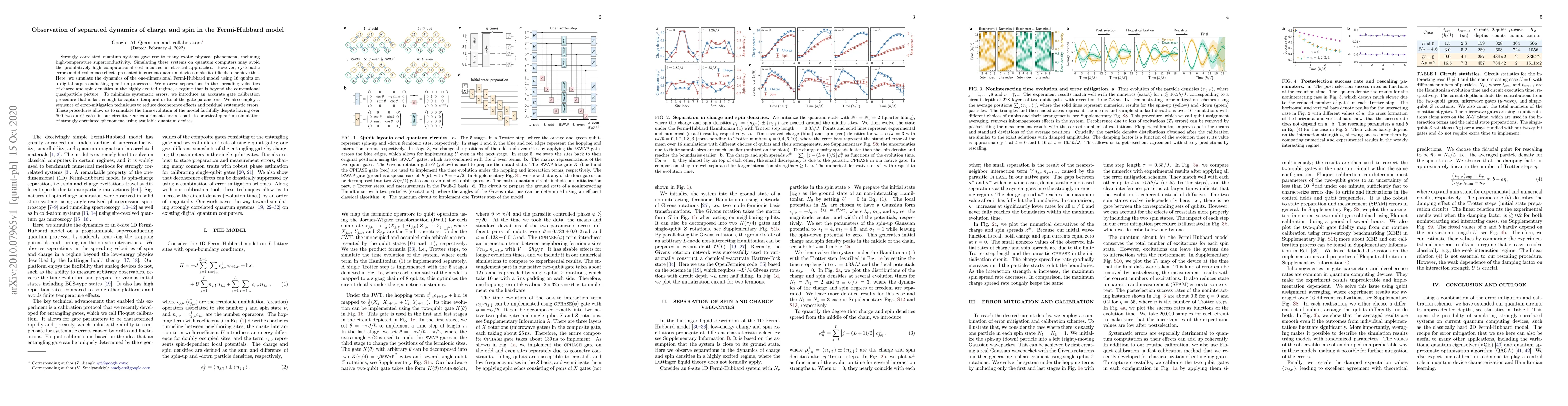 Strongly correlated quantum systems give rise to many exotic physical phenomena, including high-temperature superconductivity. Simulating these systems on quantum computers may avoid the prohibitively high computational cost incurred in classical approaches. However, systematic errors and decoherence effects presented in current quantum devices make it difficult to achieve this. Here, we simulate the dynamics of the one-dimensional Fermi-Hubbard model using 16 qubits on a digital superconducting quantum processor. We observe separations in the spreading velocities of charge and spin densities in the highly excited regime, a regime that is beyond the conventional quasiparticle picture. To minimize systematic errors, we introduce an accurate gate calibration procedure that is fast enough to capture temporal drifts of the gate parameters. We also employ a sequence of error-mitigation techniques to reduce decoherence effects and residual systematic errors. These procedures allow us to simulate the time evolution of the model faithfully despite having over 600 two-qubit gates in our circuits. Our experiment charts a path to practical quantum simulation of strongly correlated phenomena using available quantum devices.