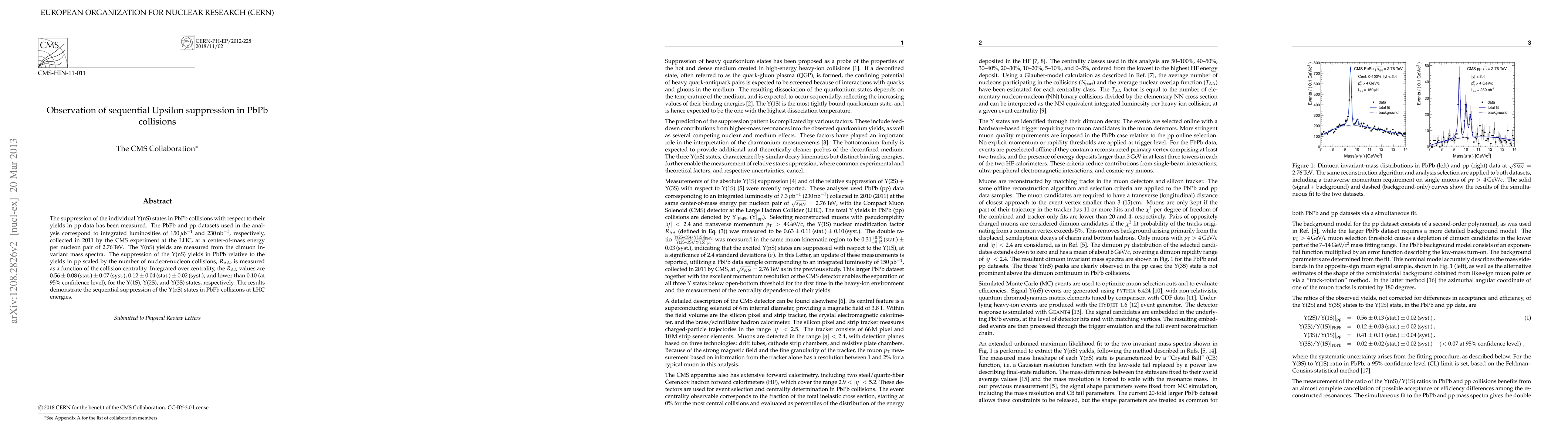 The CMS experiment at the LHC observed significant suppression of Upsilon(nS) states in PbPb collisions compared to pp collisions, indicating sequential suppression across different energy levels. The measured R[AA] values show a decreasing trend from 0.56 for Upsilon(1S) to below 0.10 for Upsilon(3S).