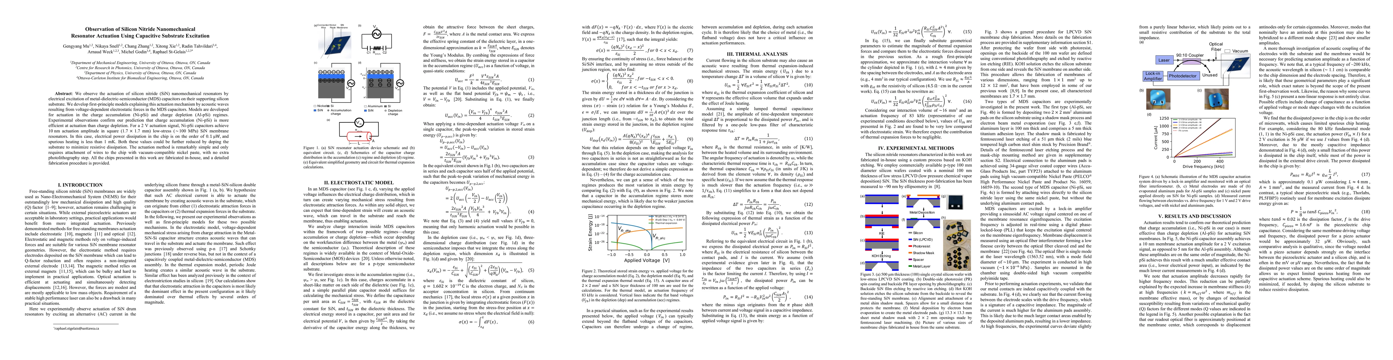This paper observes the actuation of silicon nitride nanomechanical resonators via capacitive substrate excitation using MDS capacitors, demonstrating more efficient charge accumulation actuation. The actuation achieves 10 nm amplitude with minimal power dissipation and heating, showcasing a simple actuation method requiring minimal fabrication steps.