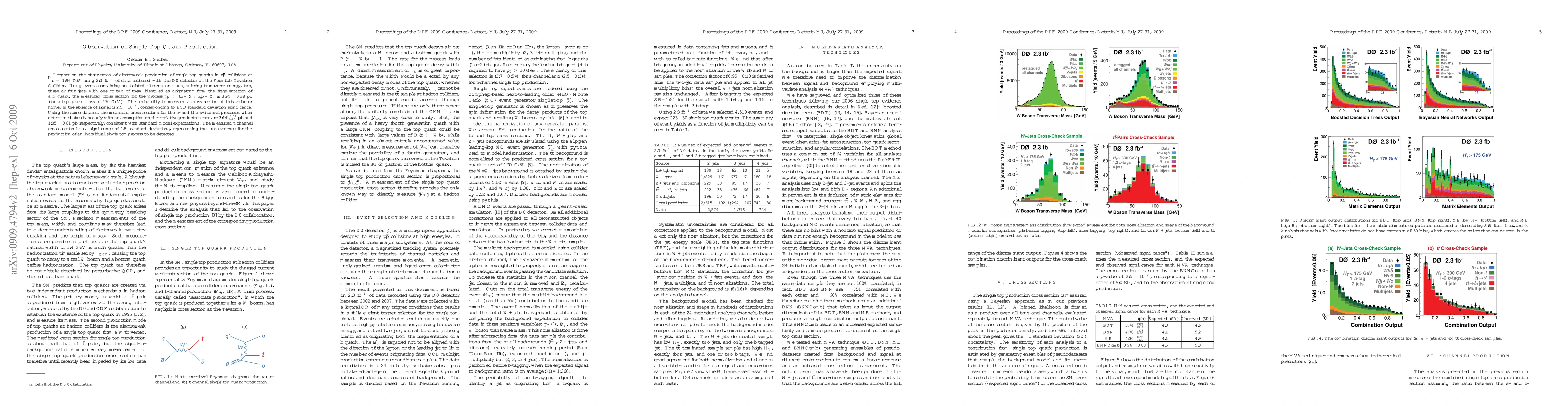 I report on the observation of electroweak production of single top quarks in proton anti-proton collisions at a center of mass energy of 1.96 TeV using 2.3 inverse-fb of data collected with the D0 detector at the Fermilab Tevatron Collider. Using events containing an isolated electron or muon, missing transverse energy, two, three or four jets, with one or two of them identified as originating from the fragmentation of a b quark, the measured cross section for the process (pp-bar to tb+X,tqb+X) is 3.94 +- 0.88 pb (for a top quark mass of 170 GeV). The probability to measure a cross section at this value or higher in the absence of signal is 2.5E-7, corresponding to a 5.0 standard deviation significance. Using the same dataset, the measured cross sections for the t- and the s-channel processes when determined simultaneously with no assumption on their relative production rate are 3.14+0.94-0.80 pb and 1.05+-0.81pb respectively, consistent with standard model expectations. The measured t-channel cross section has a significance of 4.8 standard deviations, representing the first evidence for the production of an individual single top process to be detected.