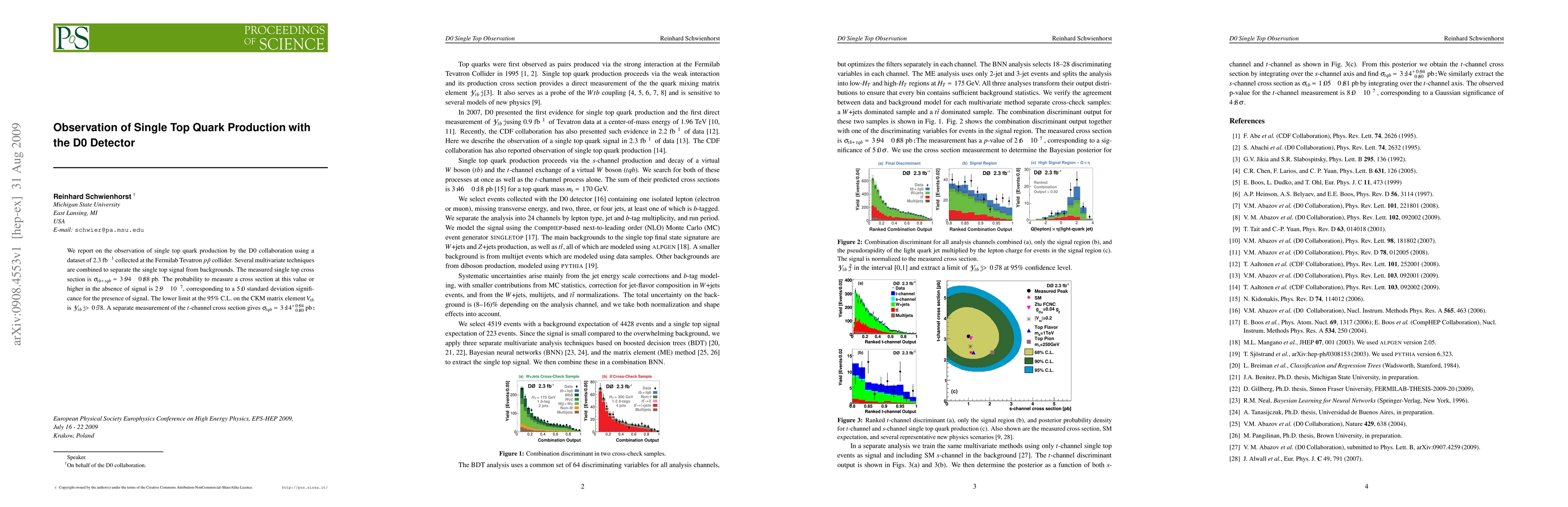 The D0 collaboration observes single top quark production with a 5.0 standard deviation significance using 2.3 fb^-1 of Tevatron ppbar collision data. The measured cross section is 3.94±0.88 pb, and the lower limit on the CKM matrix element |Vtb| is 0.78 at 95% C.L. A separate t-channel cross section measurement yields 3.14±0.94 -0.80 pb.