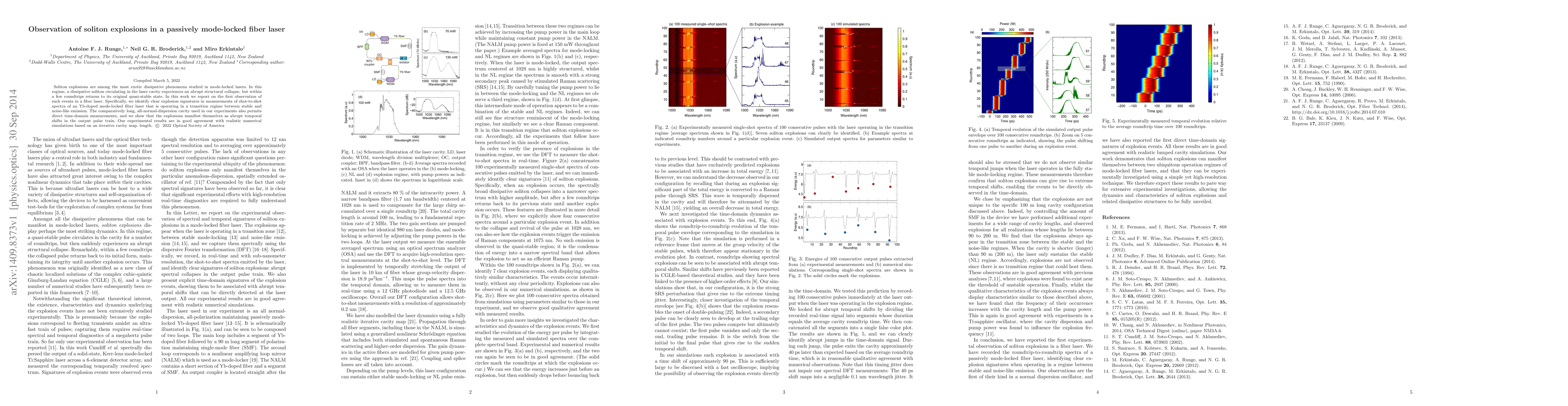 The research reports the first observation of soliton explosions in a Yb-doped fiber laser, showing clear signatures in shot-to-shot spectra and temporal shifts in pulse trains, corroborated by numerical simulations.