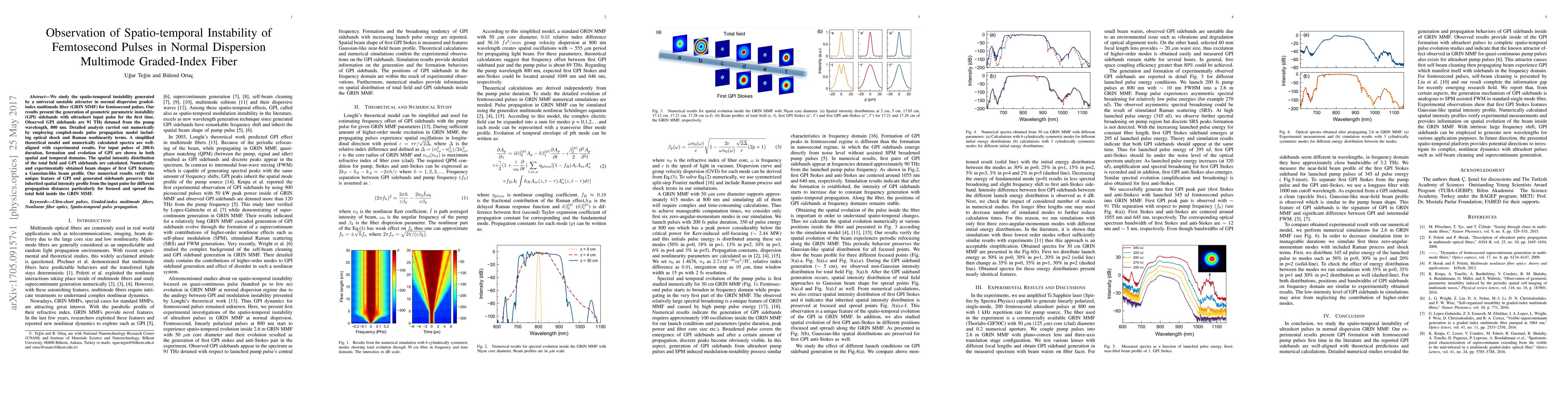 Researchers observed spatio-temporal instability in femtosecond pulses within normal dispersion multimode graded-index fiber, generating geometric parametric instability sidebands for the first time. The findings suggest that GPI preserves its spatial intensity profile from the input pulse over varying propagation distances.