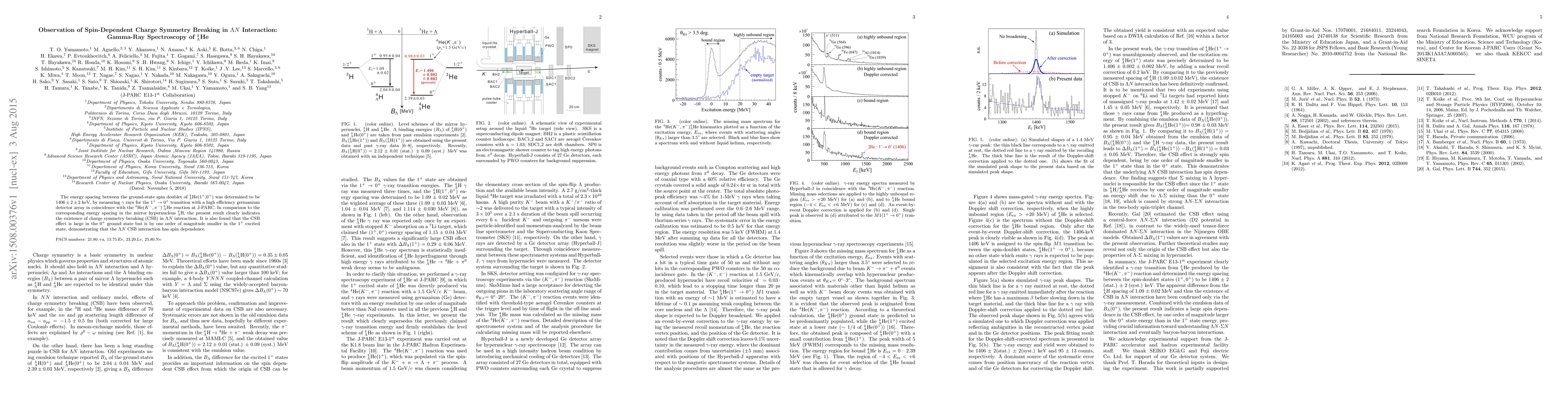The energy spacing between the ground-state spin doublet of $^4_\Lambda $He(1$^+$,0$^+$) was determined to be $1406 \pm 2 \pm 2$ keV, by measuring $\gamma$ rays for the $1^+ \to 0^+$ transition with a high efficiency germanium detector array in coincidence with the $^4$He$(K^-,\pi^-)$ $^4_\Lambda $He reaction at J-PARC. In comparison to the corresponding energy spacing in the mirror hypernucleus $^4_\Lambda $H, the present result clearly indicates the existence of charge symmetry breaking (CSB) in $\Lambda N$ interaction. It is also found that the CSB effect is large in the $0^+$ ground state but is by one order of magnitude smaller in the $1^+$ excited state, demonstrating that the $\Lambda N$ CSB interaction has spin dependence.
