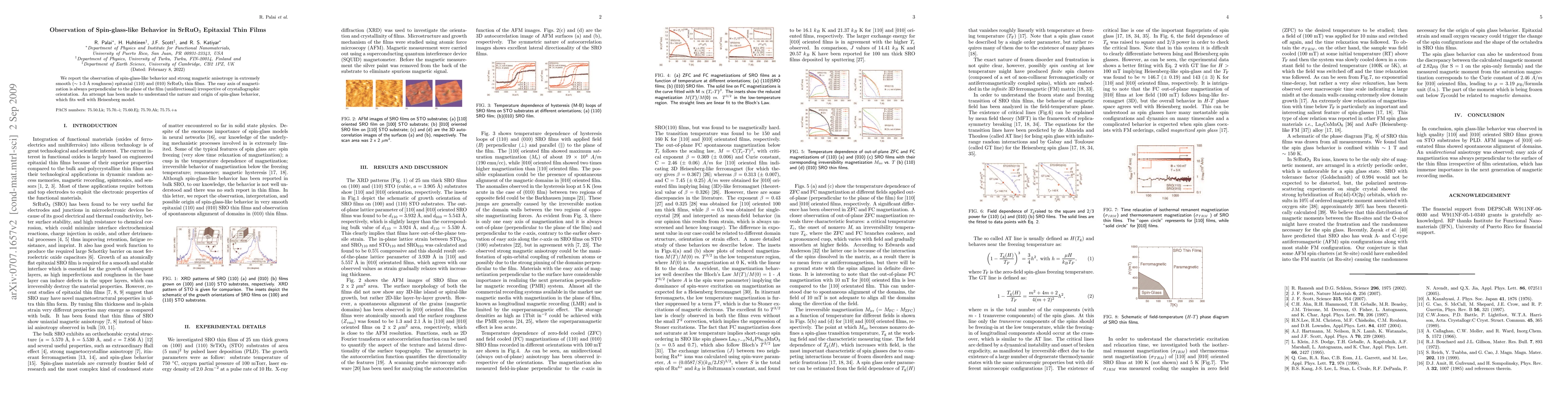 SrRuO3 epitaxial thin films exhibit spin-glass-like behavior and strong magnetic anisotropy, with a unidirectional easy axis of magnetization perpendicular to the film plane, fitting well with the Heisenberg model. The study focuses on understanding the origin of this unique magnetic behavior in these films.