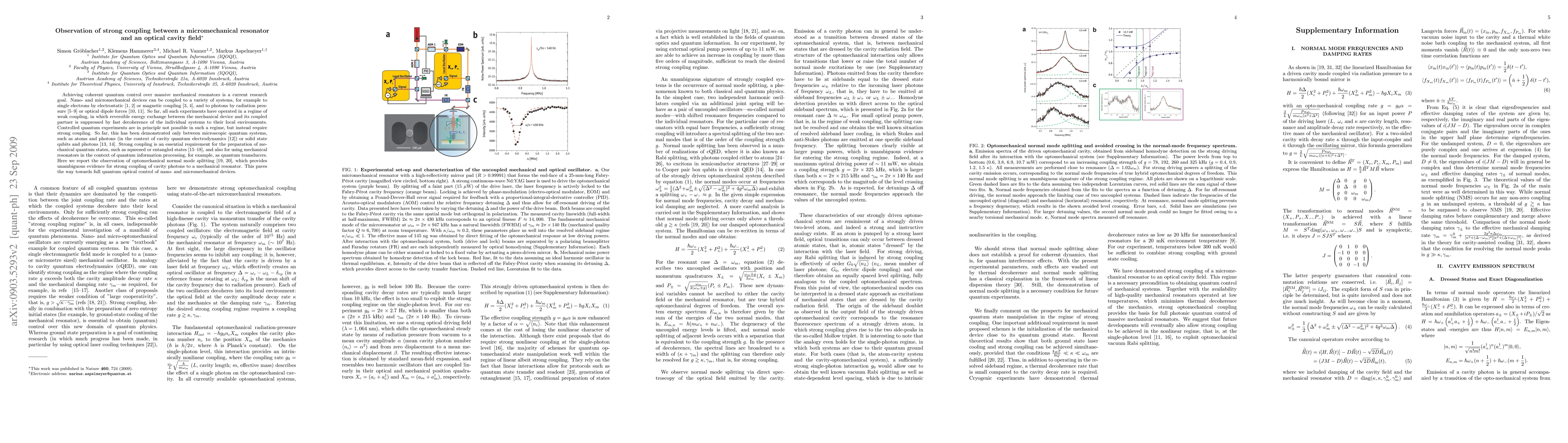 This paper reports the observation of strong coupling between a micromechanical resonator and an optical cavity field, demonstrating optomechanical normal mode splitting. This breakthrough enables quantum optical control of nano- and micromechanical devices, paving the way for quantum information processing applications.