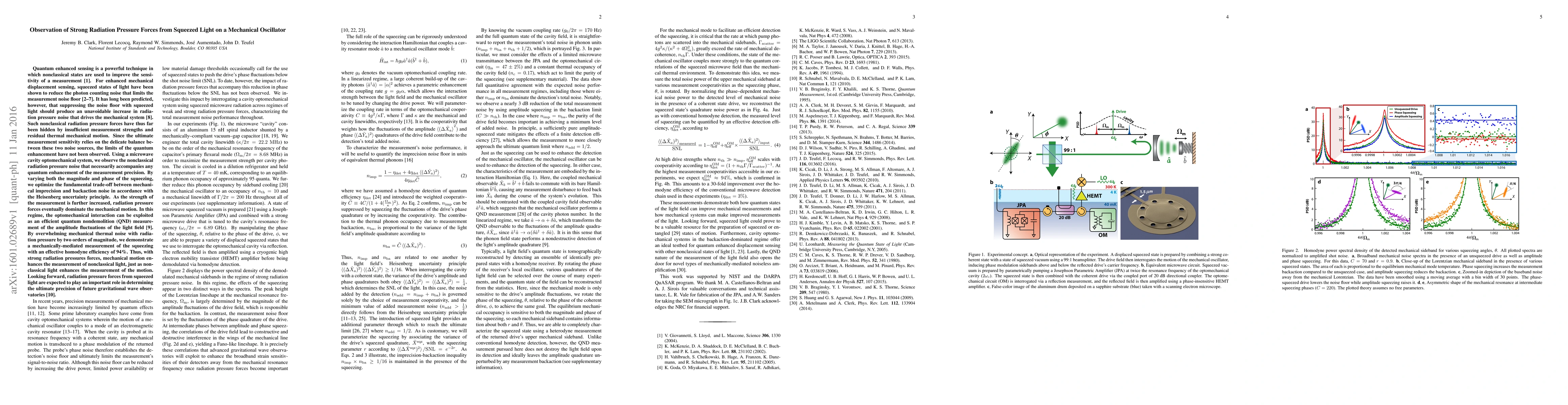 This paper observes the strong radiation pressure forces from squeezed light on a mechanical oscillator, demonstrating the quantum enhancement of sensing precision. It reveals the fundamental trade-off between measurement sensitivity and backaction noise, showing that radiation pressure forces eventually dominate mechanical motion, enabling efficient quantum nondemolition measurements.