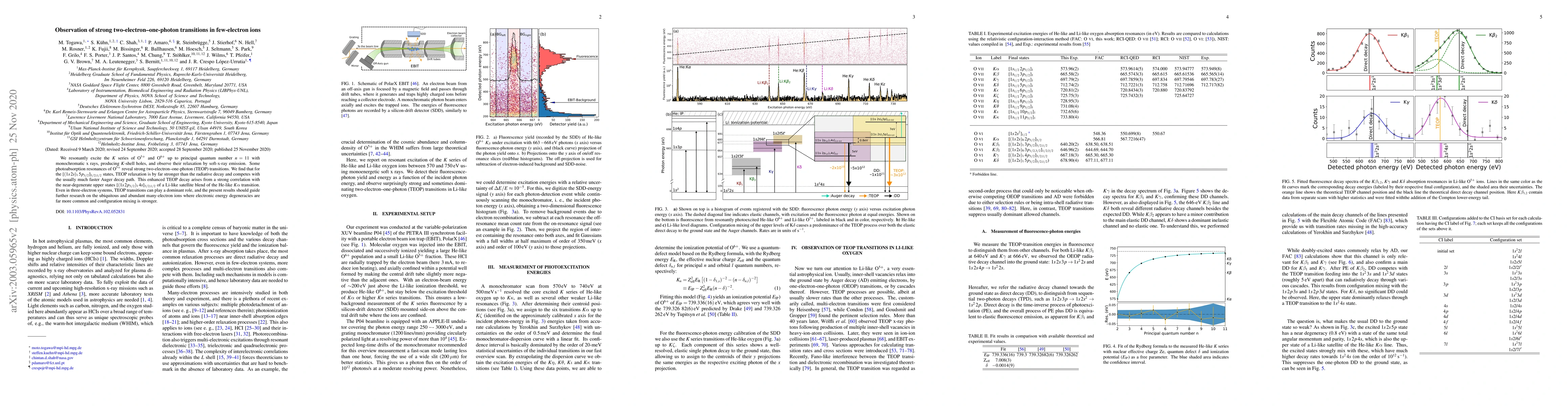 Researchers observed strong two-electron-one-photon transitions in O ions, where photoabsorption relaxes energy states through non-radiative decay, competing with Auger decay and revealing the importance of configuration mixing in many-electron systems.