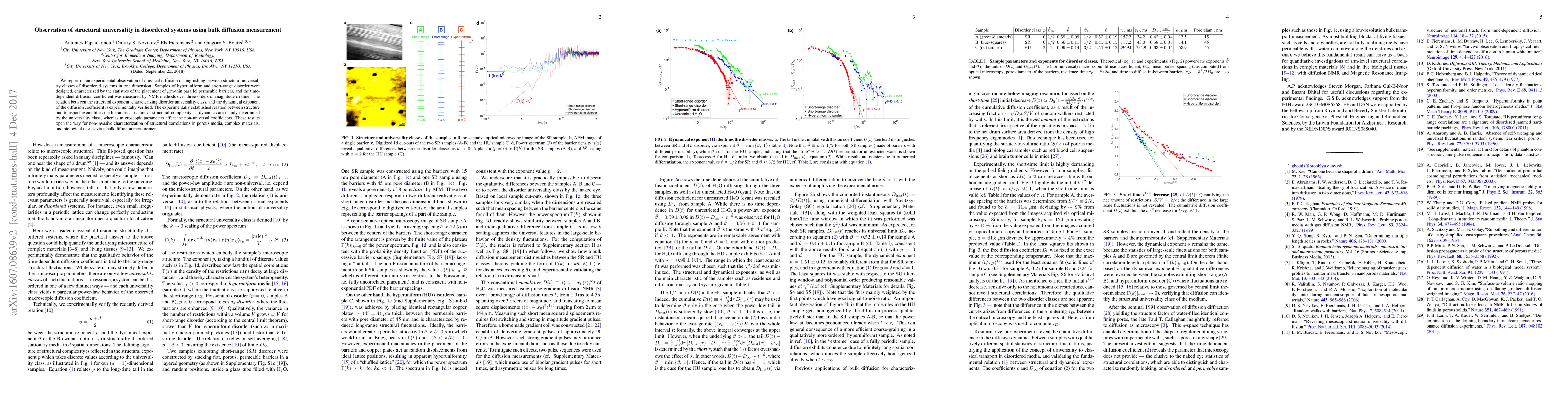 Researchers observed structural universality in disordered systems through bulk diffusion measurement, finding a direct relationship between structure and transport properties. This discovery can lead to non-invasive characterization of complex materials and tissues via diffusion measurements.