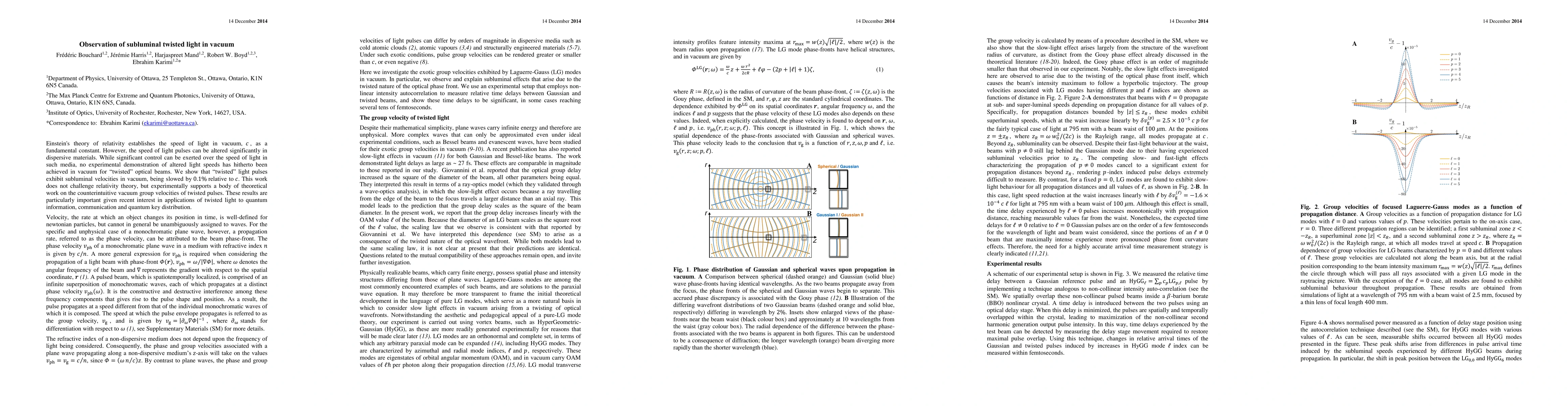 Einstein's theory of relativity establishes the speed of light in vacuum, c, as a fundamental constant. However, the speed of light pulses can be altered significantly in dispersive materials. While significant control can be exerted over the speed of light in such media, no experimental demonstration of altered light speeds has hitherto been achieved in vacuum for ``twisted'' optical beams. We show that ``twisted'' light pulses exhibit subluminal velocities in vacuum, being slowed by 0.1\% relative to c. This work does not challenge relativity theory, but experimentally supports a body of theoretical work on the counterintuitive vacuum group velocities of twisted pulses. These results are particularly important given recent interest in applications of twisted light to quantum information, communication and quantum key distribution.