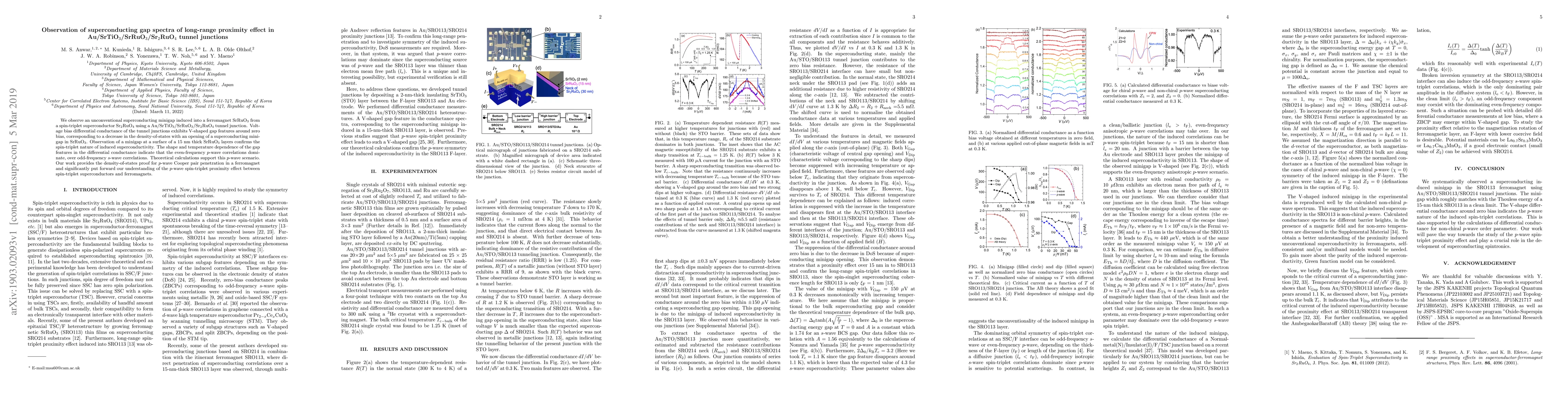 This study observes an unconventional superconducting minigap in a ferromagnet SrRuO$_3$ induced by a spin-triplet superconductor Sr$_2$RuO$_4$ via a tunnel junction. The findings confirm $p$-wave Cooper pair penetration and provide density-of-states evidence for the $p$-wave spin-triplet proximity effect.