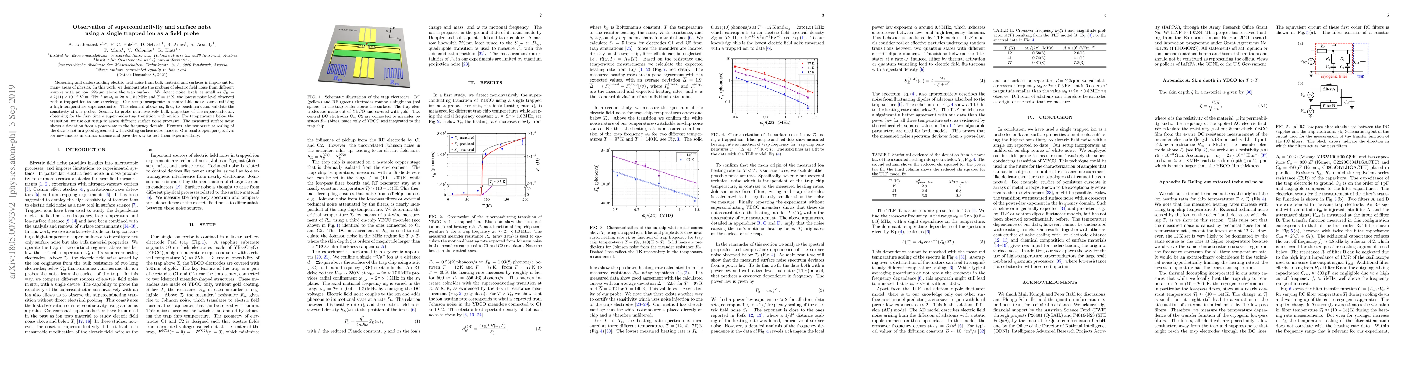 The research presents the highest sensitivity achieved with a trapped ion for electric field noise measurement, along with the novel observation of a superconducting transition and surface noise processes using a trapped ion.