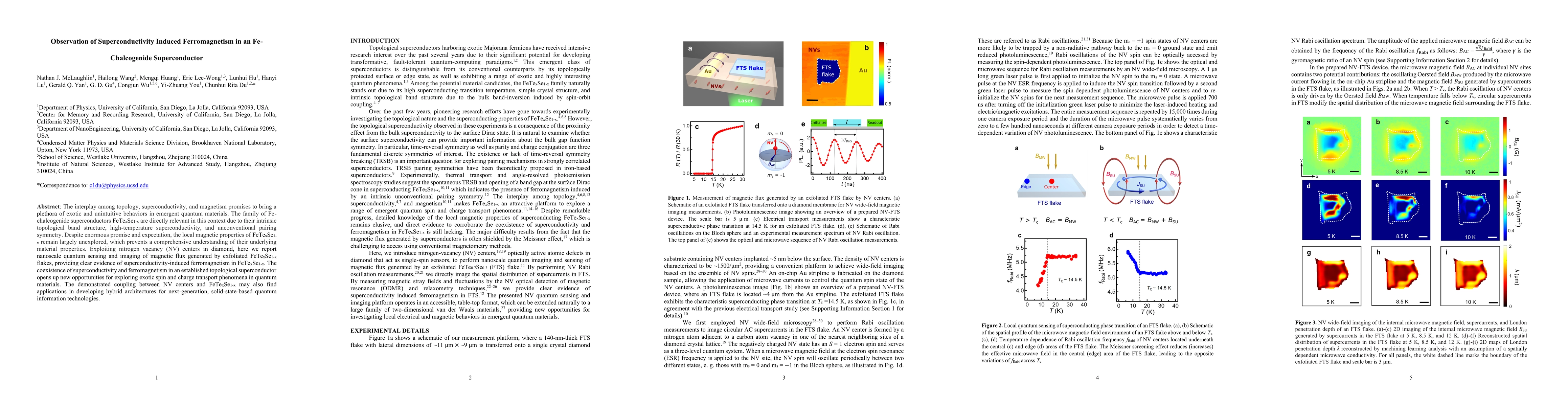 The interplay among topology, superconductivity, and magnetism promises to bring a plethora of exotic and unintuitive behaviors in emergent quantum materials. The family of Fe-chalcogenide superconductors FeTexSe1-x are directly relevant in this context due to their intrinsic topological band structure, high-temperature superconductivity, and unconventional pairing symmetry. Despite enormous promise and expectation, the local magnetic properties of FeTexSe1-x remain largely unexplored, which prevents a comprehensive understanding of their underlying material properties. Exploiting nitrogen vacancy (NV) centers in diamond, here we report nanoscale quantum sensing and imaging of magnetic flux generated by exfoliated FeTexSe1-x flakes, providing clear evidence of superconductivity-induced ferromagnetism in FeTexSe1-x. The coexistence of superconductivity and ferromagnetism in an established topological superconductor opens up new opportunities for exploring exotic spin and charge transport phenomena in quantum materials. The demonstrated coupling between NV centers and FeTexSe1-x may also find applications in developing hybrid architectures for next-generation, solid-state-based quantum information technologies.