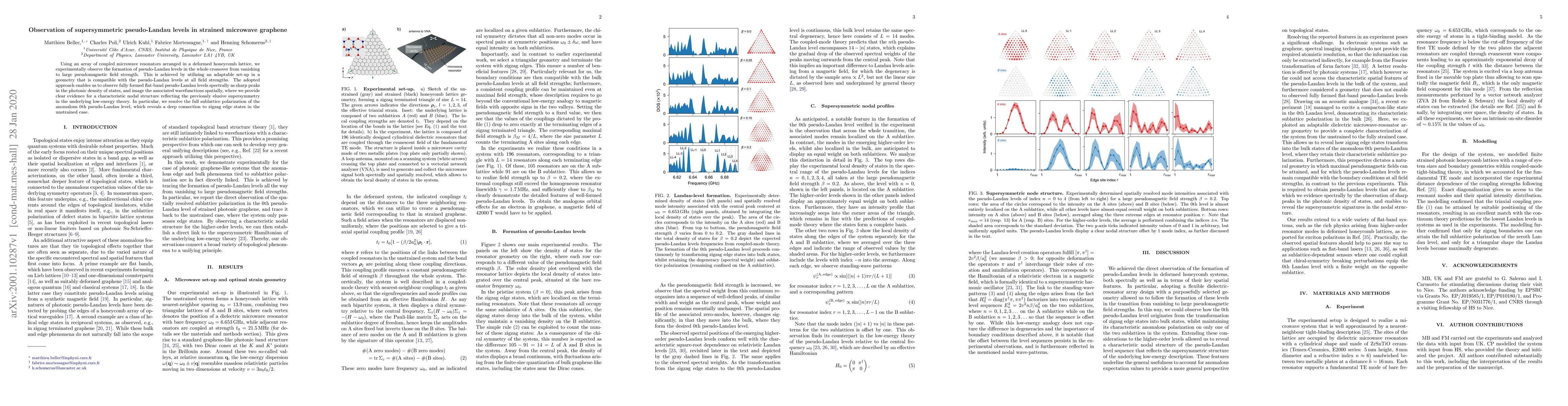 This research observes pseudo-Landau levels in strained microwave graphene using coupled resonators, revealing the characteristic nodal structure and supersymmetry in the low-energy theory through sharp spectral peaks and spatial wavefunction imaging. The study highlights the full sublattice polarization of the anomalous 0th pseudo-Landau level linked to zigzag edge states.