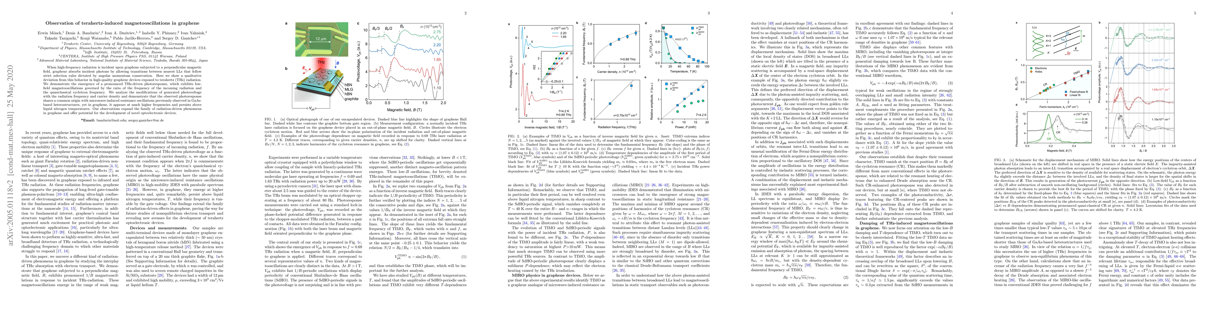 The paper presents a study on graphene's unique response to terahertz radiation under a perpendicular magnetic field, revealing magnetooscillations not seen with microwave radiation. This phenomenon, linked to microwave-induced effects in GaAs, operates at higher frequencies and remains stable above liquid nitrogen temperatures, suggesting potential for advanced optoelectronic device development.