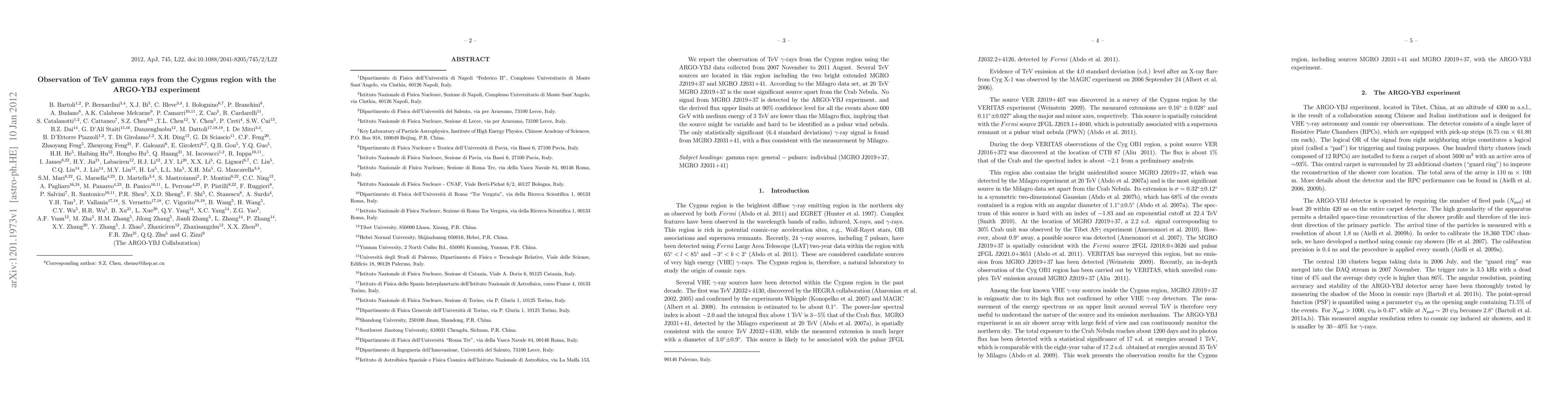 The ARGO-YBJ experiment detected a significant TeV gamma-ray signal from MGRO J2031+41 in the Cygnus region, while finding no signal from MGRO J2019+37, suggesting the latter may be variable and not easily identifiable as a pulsar wind nebula.