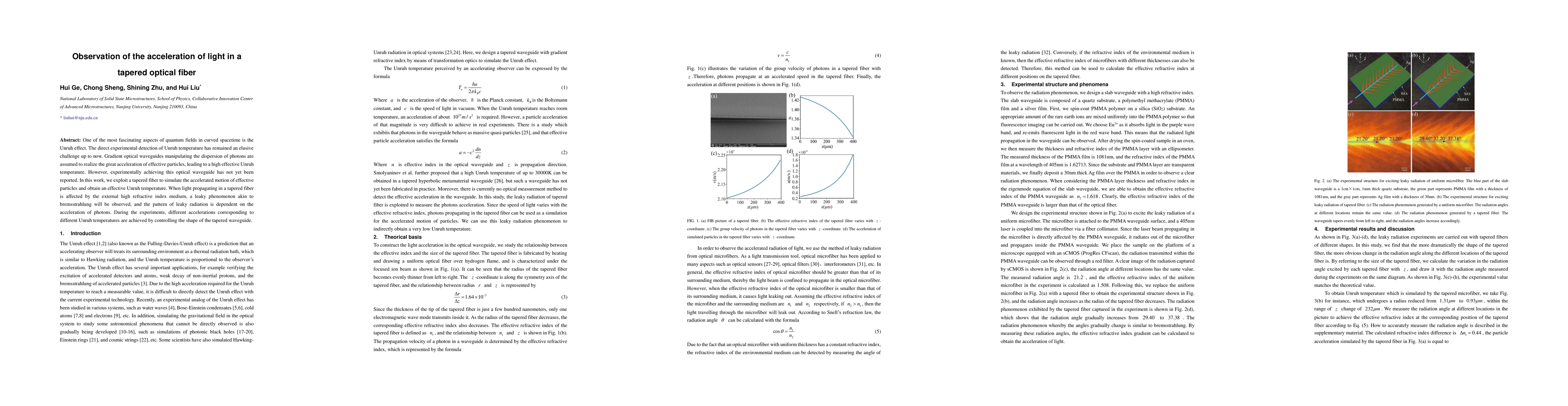 Researchers used a tapered optical fiber to simulate accelerated motion of light, observing a phenomenon similar to bremsstrahlung radiation depending on acceleration, which relates to the Unruh effect.