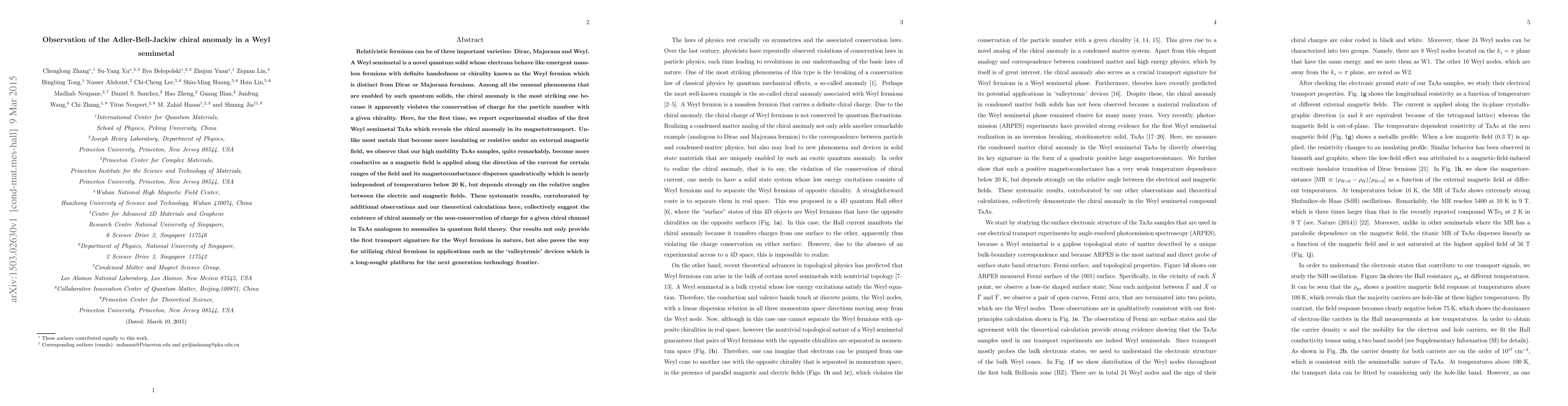 The research observes the Adler-Bell-Jackiw chiral anomaly in a Weyl semimetal crystal, marking a significant experimental confirmation of this quantum phenomenon in condensed matter systems. This discovery provides new insights into the behavior of chiral fermions in non-trivial topological materials.