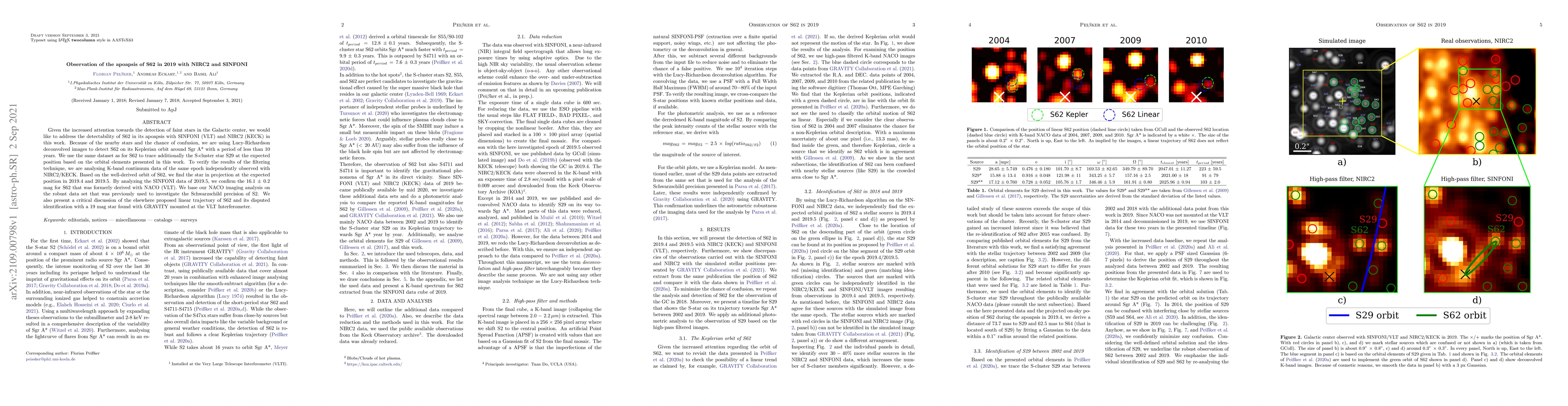 Given the increased attention towards the detection of faint stars in the Galactic center, we would like to address the detectability of S62 in its apoapsis with SINFONI (VLT) and NIRC2 (KECK) in this work. Because of the nearby stars and the chance of confusion, we are using Lucy-Richardson deconvolved images to detect S62 on its Keplerian orbit around Sgr~A* with a period of less than 10 years. We use the same dataset as for S62 to trace additionally the S-cluster star S29 at the expected position based on the orbital elements presented in this work. To verify the results of the filtering technique, we are analysing K-band continuum data of the same epoch independently observed with NIRC2/KECK. Based on the well-derived orbit of S62, we find the star in projection at the expected position in 2019.4 and 2019.5. By analyzing the SINFONI data of 2019.5, we confirm the $16.1\,\pm\,0.2$ mag for S62 that was formerly derived with NACO (VLT). We base our NACO imaging analysis on the robust data set that was previously used to investigate the Schwarzschild precision of S2. We also present a critical discussion of the elsewhere proposed linear trajectory of S62 and its disputed identification with a 19 mag star found with GRAVITY mounted at the VLT Interferometer.