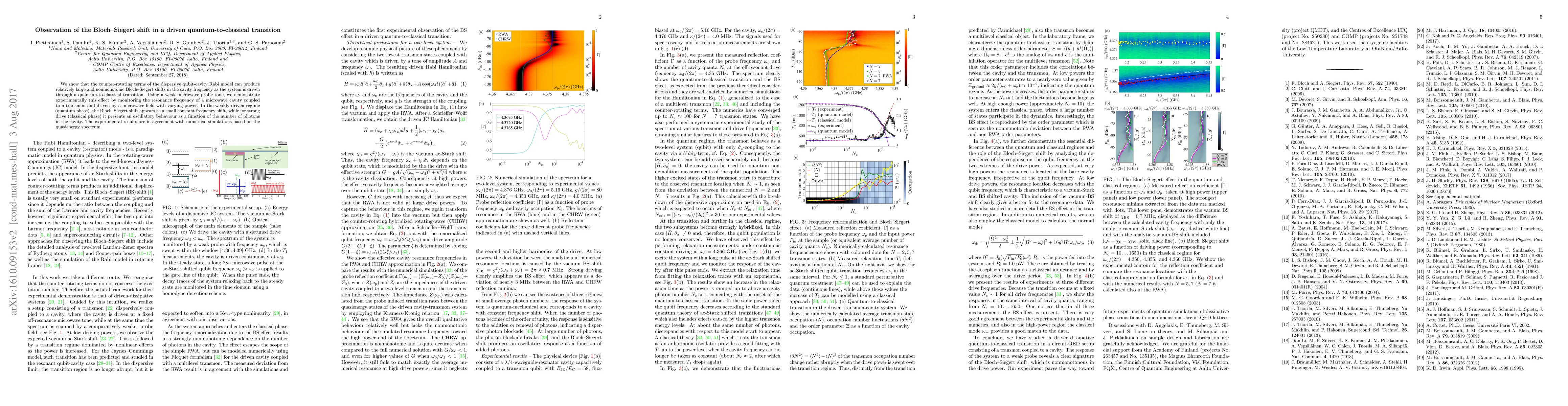 This paper demonstrates experimentally the Bloch-Siegert shift in a driven quantum-to-classical transition, showing nonmonotonic shifts in cavity frequency due to counter-rotating terms in the qubit-cavity model. The study reveals distinct frequency shift behaviors in the quantum and classical regimes, corroborated by numerical simulations.