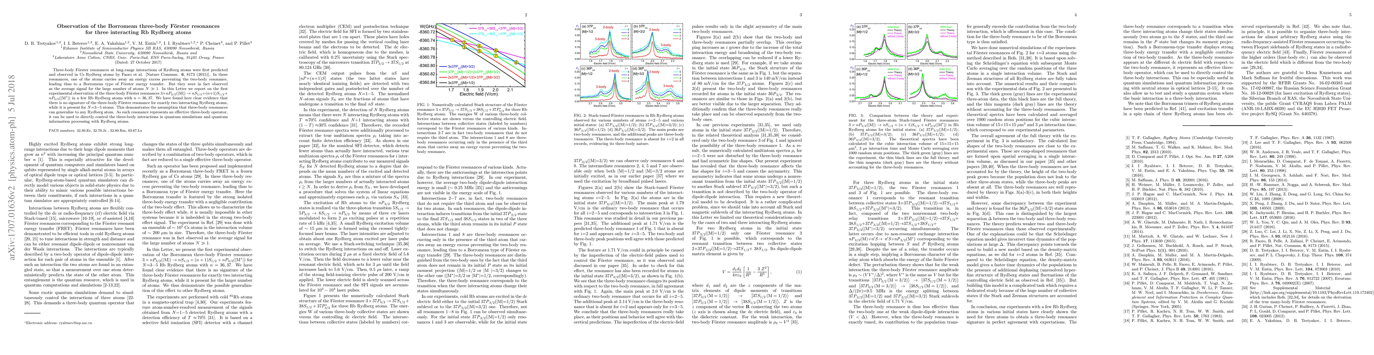 This research reports the first experimental observation of Borromean three-body Förster resonances in a few Rb Rydberg atoms, demonstrating that these resonances are significant for groups of three to five atoms rather than pairs. This finding supports the generalization of three-body resonances in Rydberg systems and highlights their potential for controlling three-body interactions in quantum simulations.