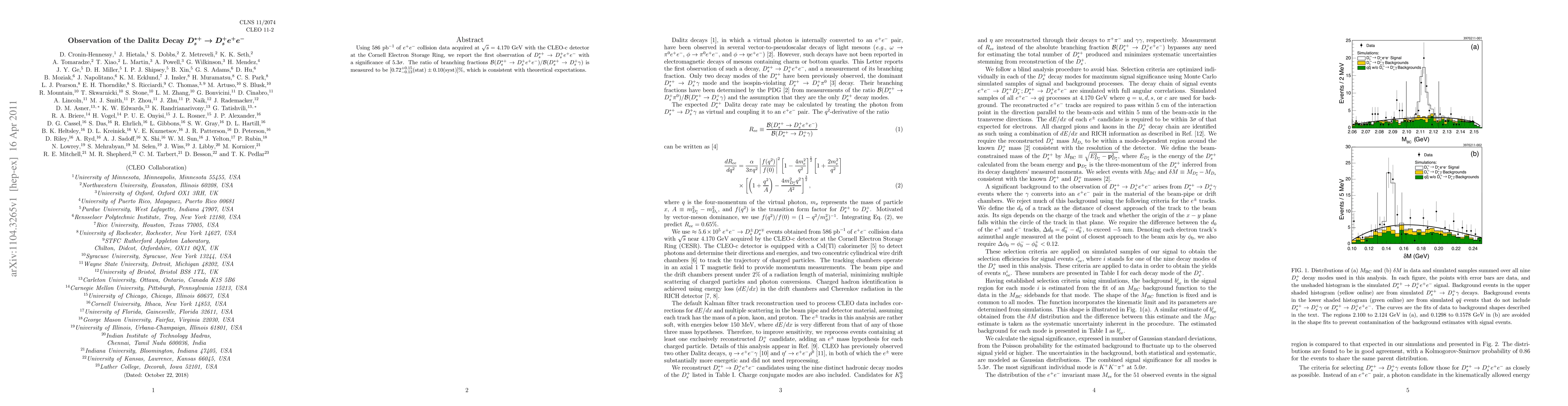 The research paper reports the first observation of the Dalitz decay $D_{s}^{*+} o D_{s}^{+} e^{+} e^{-}$ with a significance of 5.3$sigma$, using 586 $ extrm{pb}^{-1}$ of $e^{+}e^{-}$ collision data at $sqrt{s}=4.170$ GeV. The ratio of branching fractions $calB(D_{s}^{*+} o D_{s}^{+} e^{+} e^{-}) / calB(D_{s}^{*+} o D_{s}^{+} gamma)$ is measured to be $0.72^{+0.15}_{-0.13}$ ($ extrm{stat}$) $pm 0.10$ ($ extrm{syst}$), consistent with theoretical predictions.