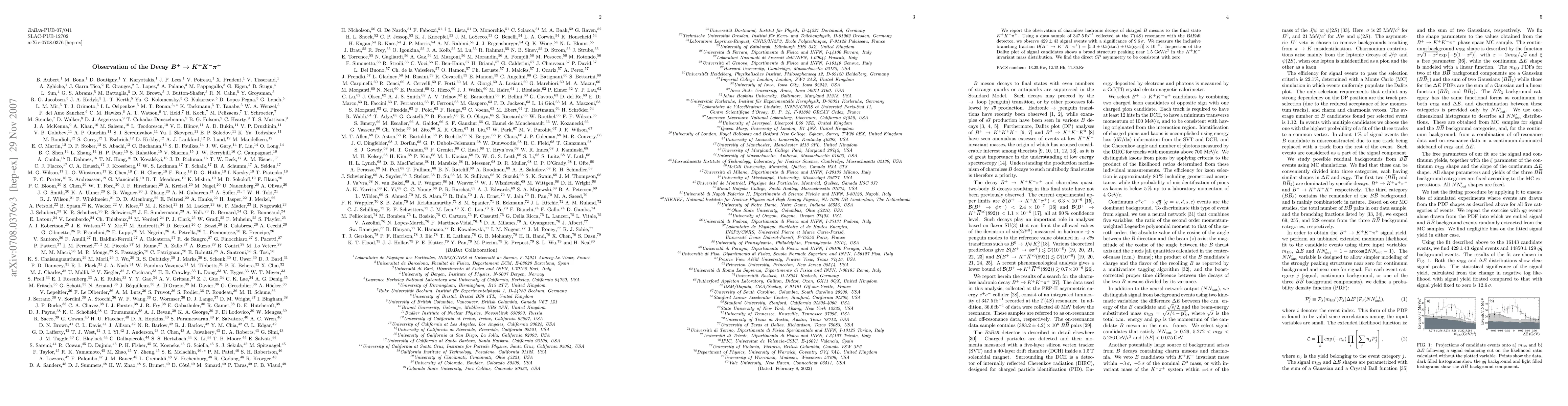 We report the observation of charmless hadronic decays of charged B mesons to the final state K+K-pi+. Using a data sample of 347.5 fb^-1 collected at the Y(4S) resonance with the BABAR detector, we observe 429+/-43 signal events with a significance of 9.6 sigma. We measure the inclusive branching fraction BF(B+ --> K+K-pi+) = [5.0+/-0.5(stat)+/-0.5(syst)]x10^-6. Inspection of the Dalitz plot of signal candidates shows a broad structure peaking near 1.5 GeV/c^2 in the K+K- invariant mass distribution. We find the direct CP asymmetry to be consistent with zero.