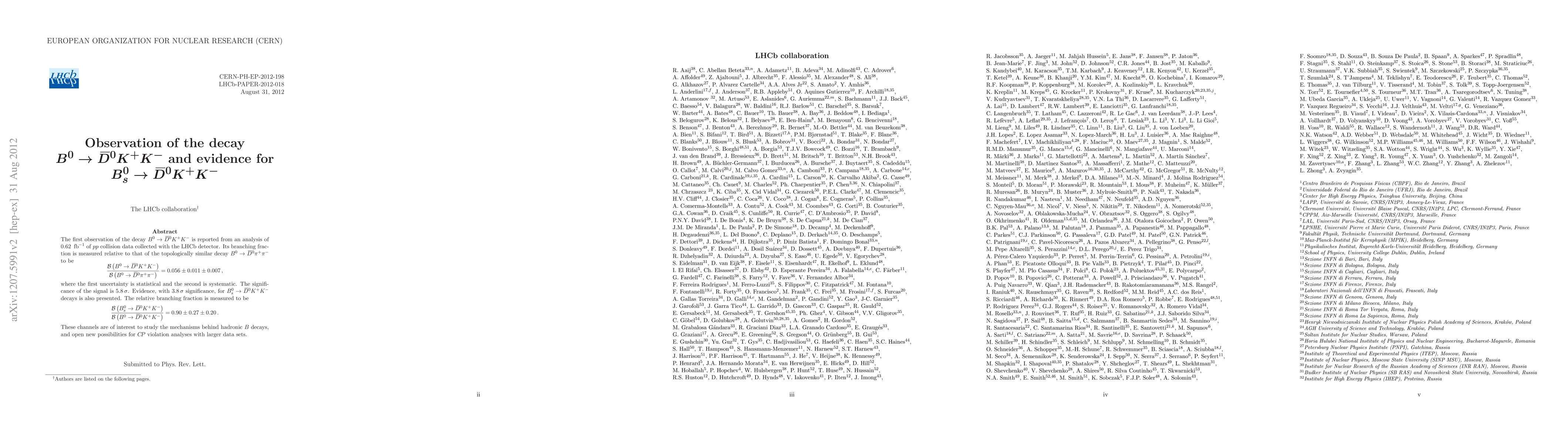 This paper reports the first observation of the decay B0 -> D0bar K+ K- using LHCb data, with a branching fraction ratio of 0.056±0.011±0.007 relative to B0 -> D0bar pi+ pi-, and presents evidence for Bs -> D0bar K+ K- with 3.8 sigma significance.