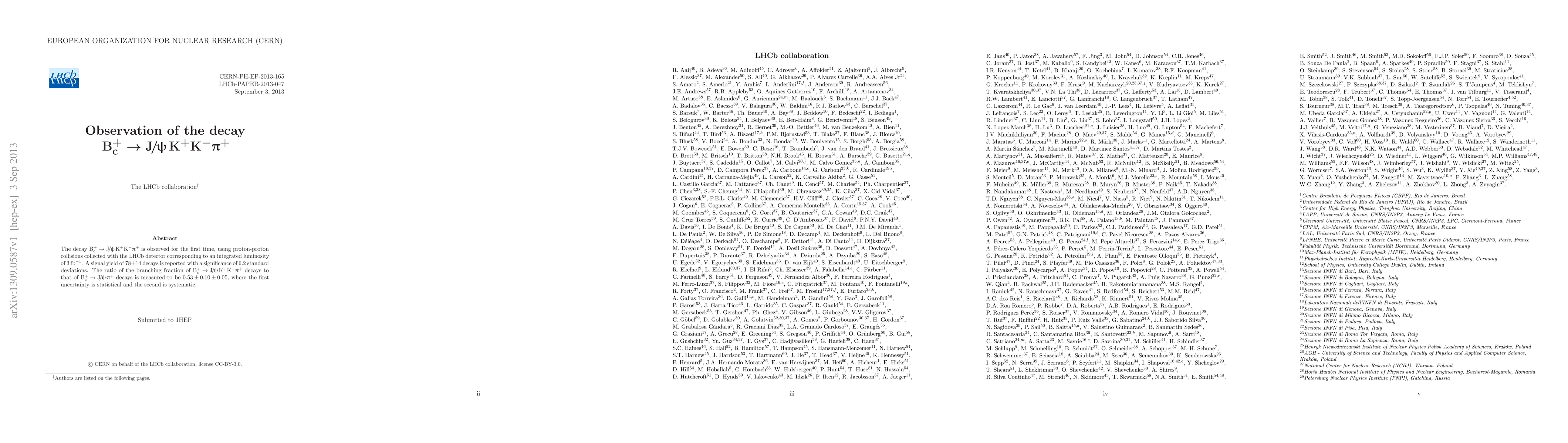 The paper reports the first observation of the decay $B_c \rightarrow J/\psi K^+ K^- \pi^+$ using LHCb data from proton-proton collisions, with a signal yield of $78\pm14$ decays and a 6.2 standard deviation significance. The branching fraction ratio to $B_c \rightarrow J/\psi \pi^+$ is measured as $0.53\pm 0.10\pm0.05$.